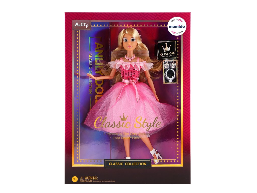 Elegantna lutka Anlily iz kolekcije Classic Style odjevena je u prekrasnu ružičastu haljinu s tilom suknjom i dodacima. Zahvaljujući detaljnoj izradi, realističnim crtama i pokretnim udovima, male modne zaljubljenice će je zavoljeti. Lutka je visoka 29 cm i idealna je za igranje princeza, modnih revija ili svakodnevnih priča.