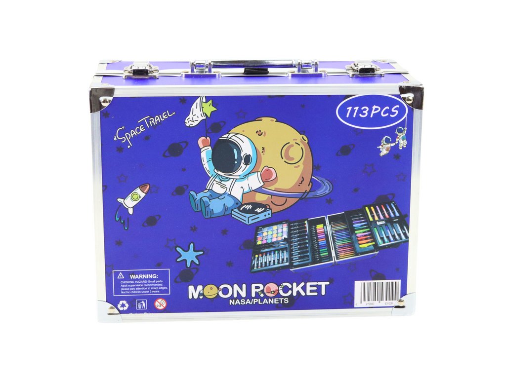 Art set u preklopnoj torbici ukrašen motivom svemira. Idealan dar za svakog malog umjetnika koji će ga odvesti u svijet mašte i kreativnosti!