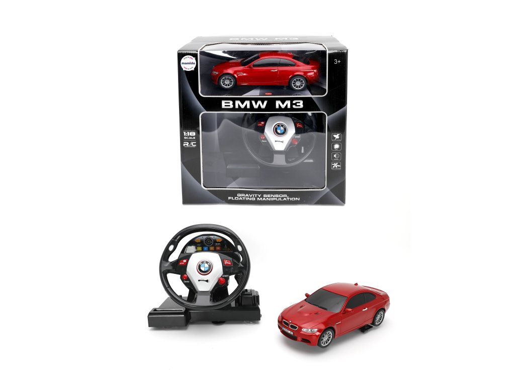 Autić na daljinsko upravljanje BMW M3 1:18 s volanom crveni