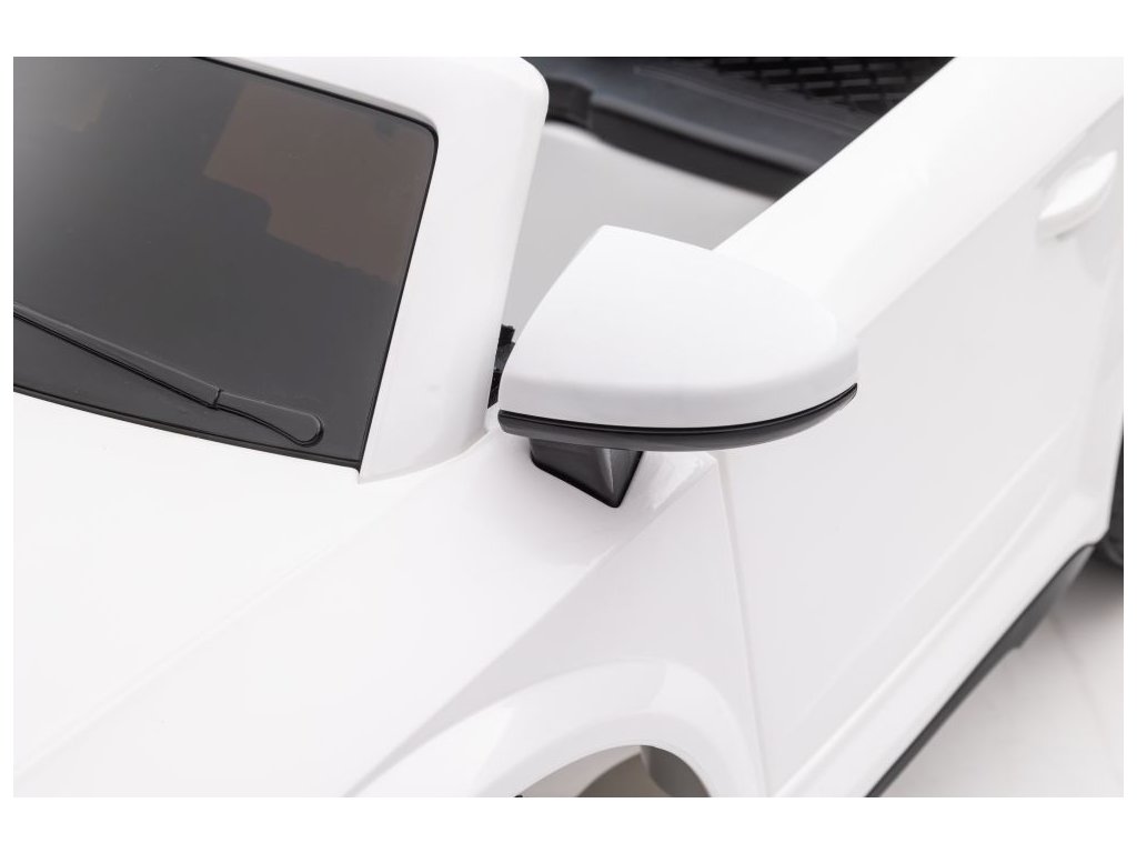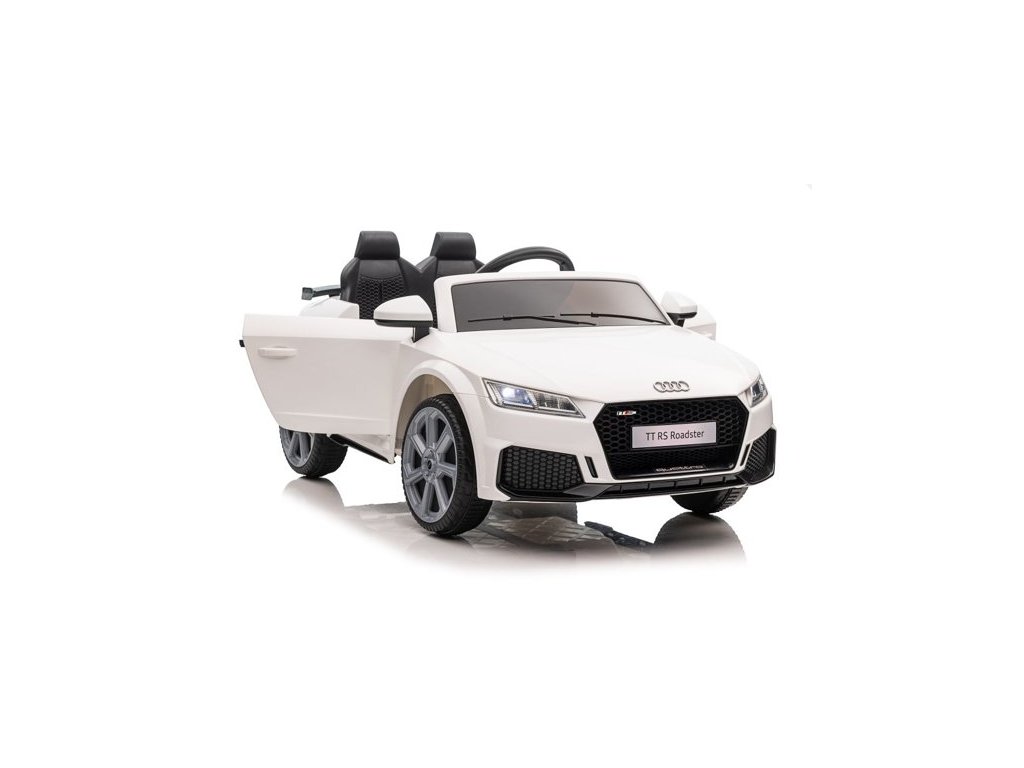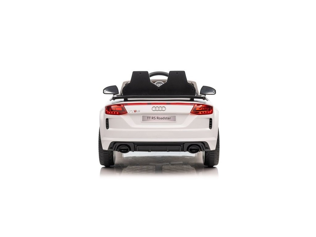 Auto na akumulator Audi TT RS Roadster bijeli ima dva motora snage 45W. Autić je opremljen s baterijom kapaciteta 12V 7Ah i nosivošću do 30 kg. Sjedalo je presvučeno ekološkom kožom i opremljeno sigurnosnim pojasom. Prednost autića su funkcionalna prednja i stražnja LED svjetla.