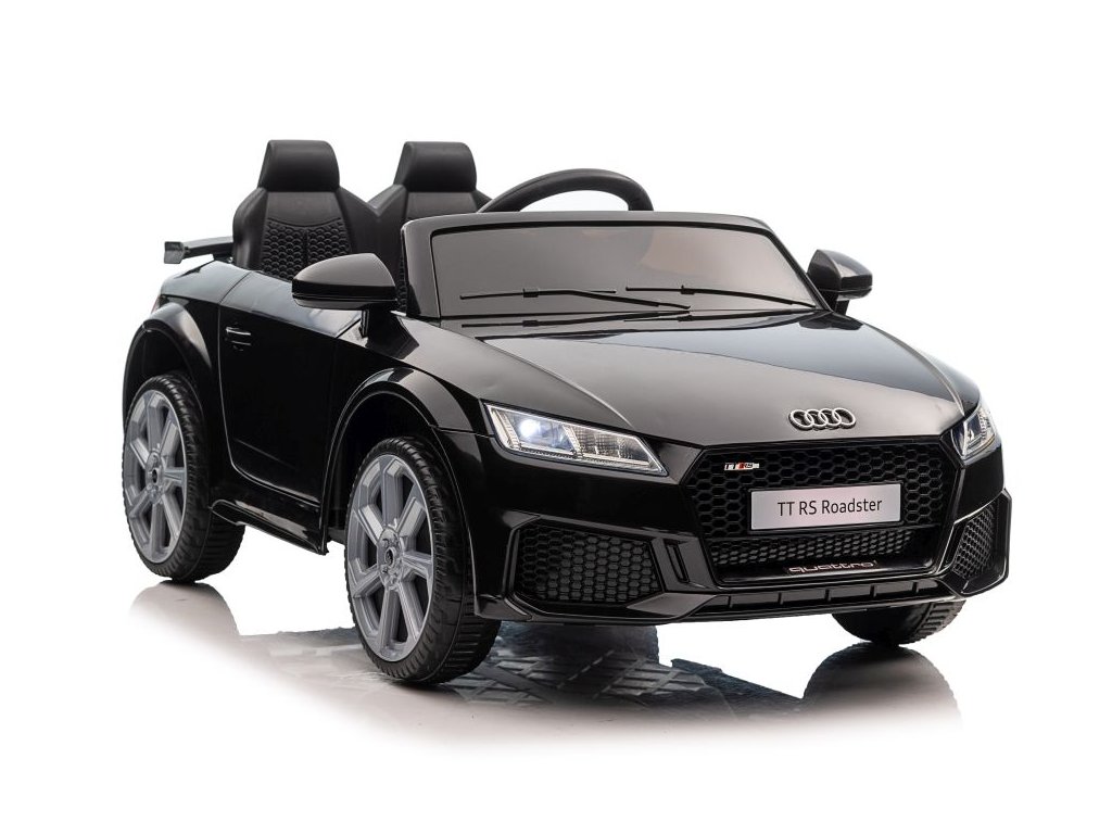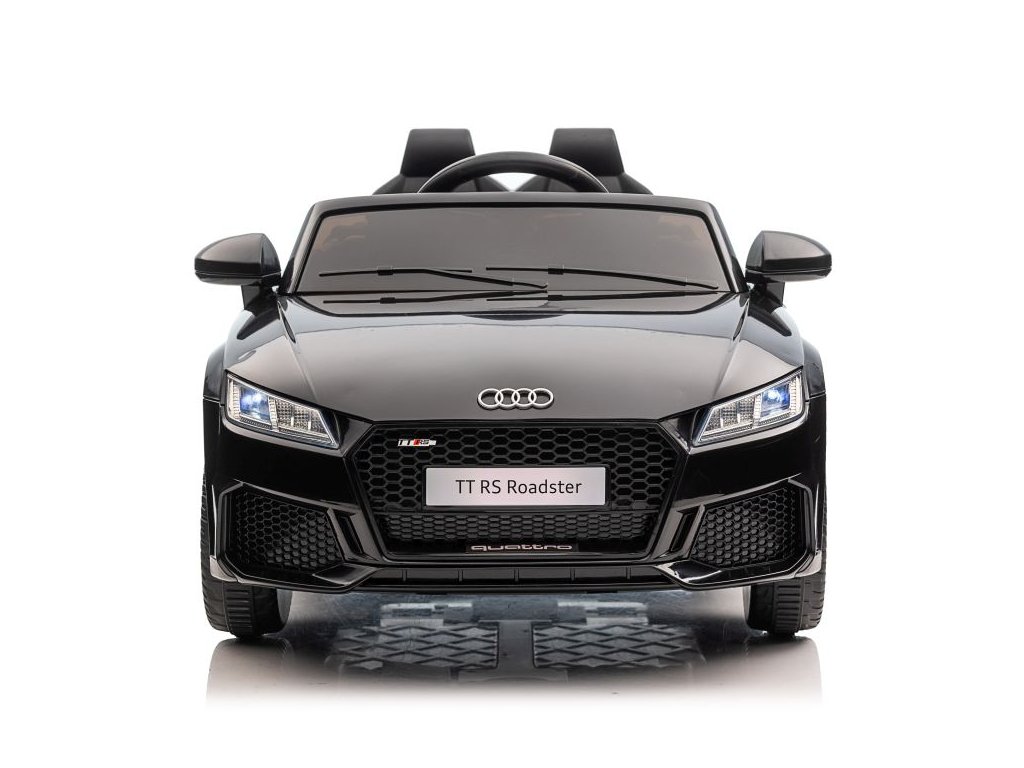 Auto na akumulator Audi TT RS Roadster crni ima dva motora snage 45W. Automobil je opremljen baterijom kapaciteta 12V 7Ah i ima nosivost 30 kg. Sjedalo je presvučeno ekološkom kožom i ima sigurnosni pojas. Prednost automobila su funkcionalna prednja i stražnja LED svjetla.