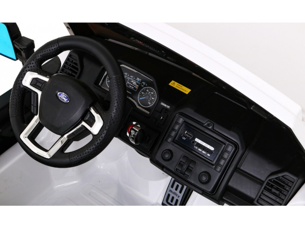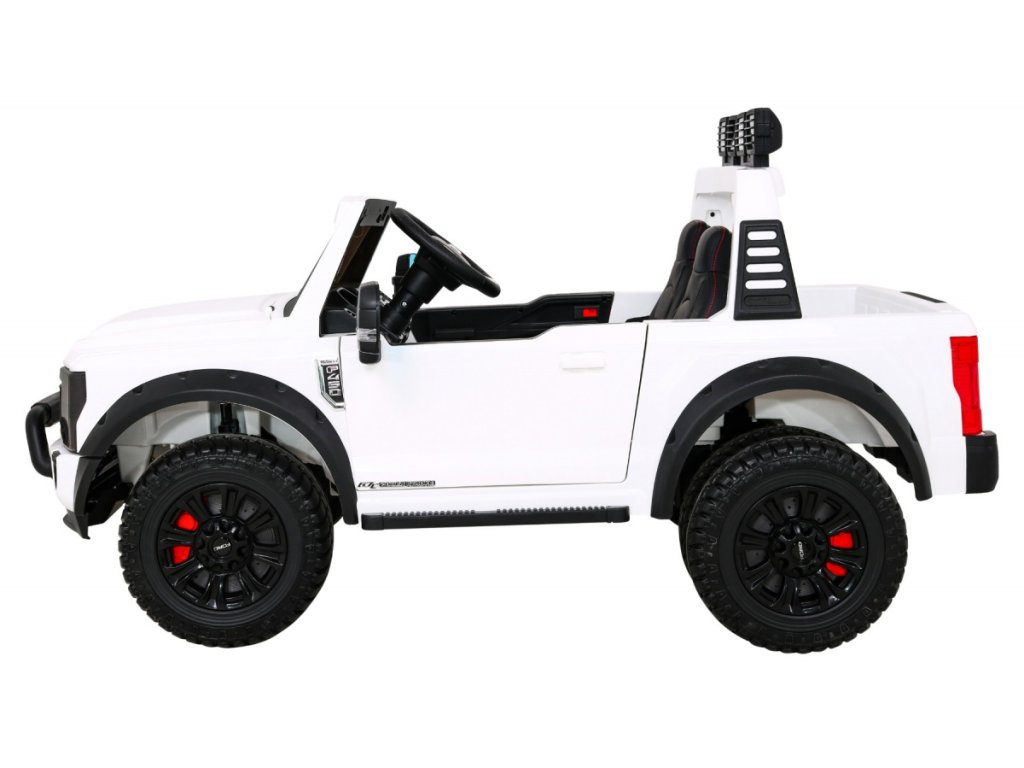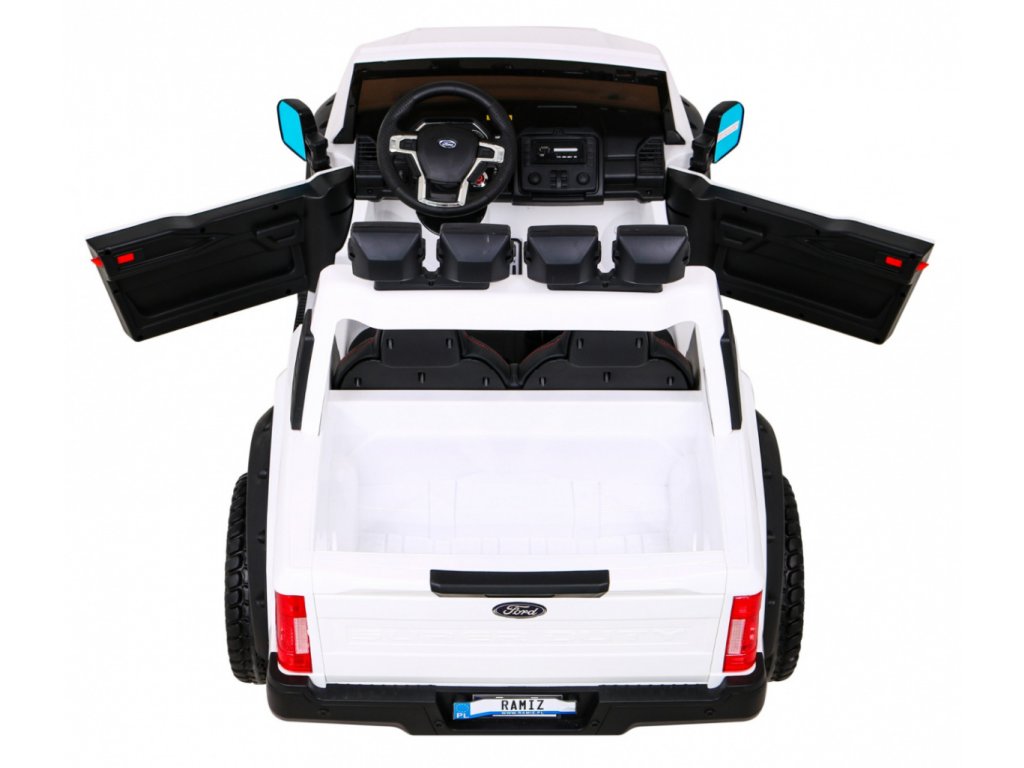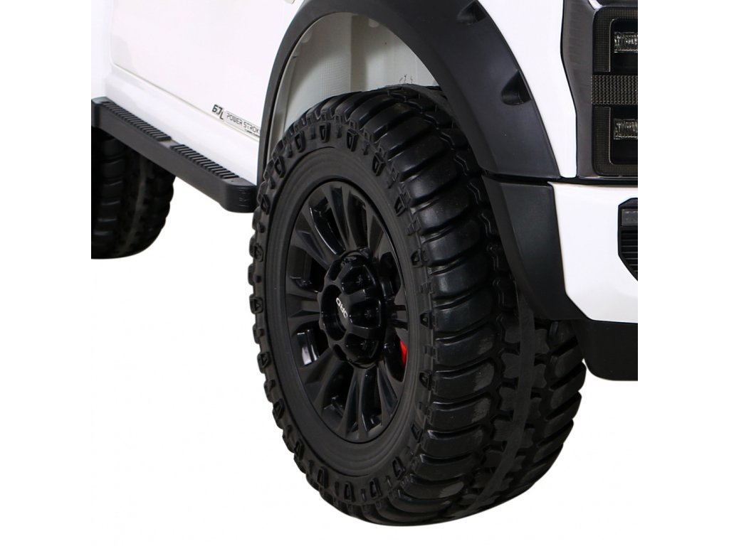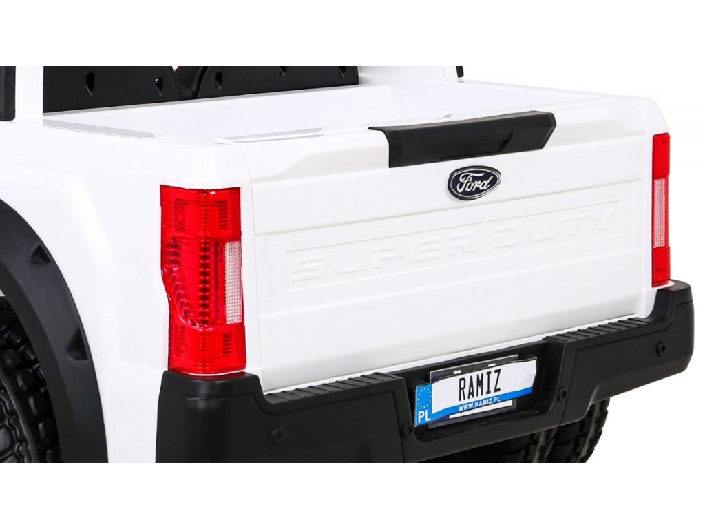 Dječji električni automobil je licencirani proizvod marke Ford. Električni automobil Ford Super Duty s četiri snažna električna motora 45W i baterijom 12V 14Ah. Ugodnu vožnju osiguravaju velika pjenasta EVA kotača. Stražnji kotači su dvostruki, što pomaže automobilu da savlada teren i neasfaltirane površine.
