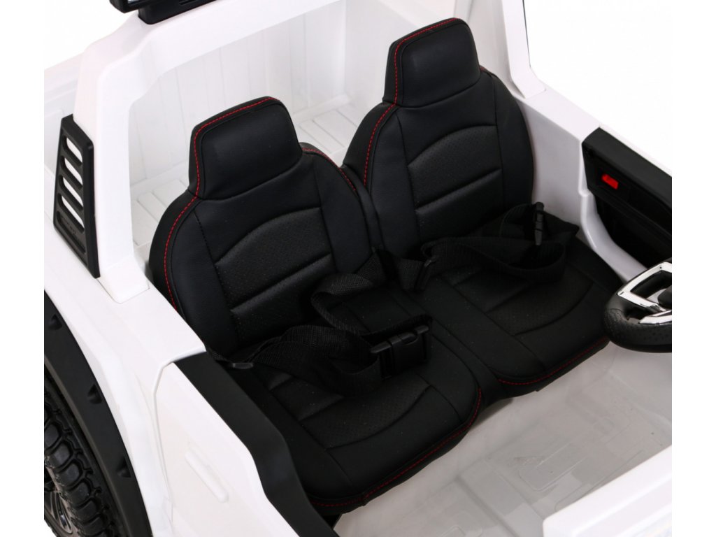 Vožnju će zasigurno učiniti ugodnijom glazbena ploča s ulazima MP3, AUX i USB. Ostala glazbena oprema uključuje gumbe sa zvukovima i sirenom na volanu. Dijete će se udobno smjestiti u kvalitetno sjedalo od eko kože, čime se misli na prirodu i sigurnost budući da je vozilo opremljeno sigurnosnim pojasima. Nosivost vozila je do 60 kg.