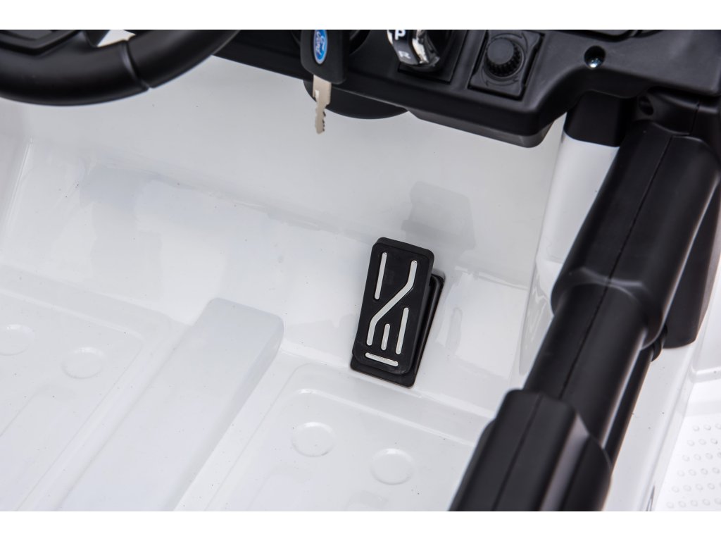 Uz daljinski upravljač možete kontrolirati vozača tijekom cijele vožnje. U svakom trenutku možete intervenirati u vožnji, promijeniti smjer, zaustaviti se ili koristiti sigurnosni gumb Stop koji odmah isključuje sve funkcije auta. Za sigurnost se doista ne morate brinuti, auto je opremljen sigurnosnim pojasom koji je prikladan i za najmanju djecu. Auto ima postupan start i zaustavljanje, što znači da auto „ne trza“.