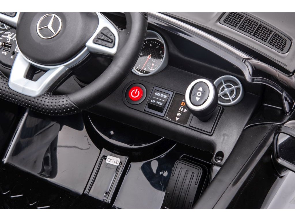 Dječji električni automobil je licencirani proizvod marke Mercedes-Benz. Autić ima kotače od ojačane EVA pjene, koji su tihi i ne ometaju tijekom vožnje. O sigurnosti djeteta brine funkcija automatske kočnice, koja se aktivira odmah nakon skidanja noge s papučice gasa.