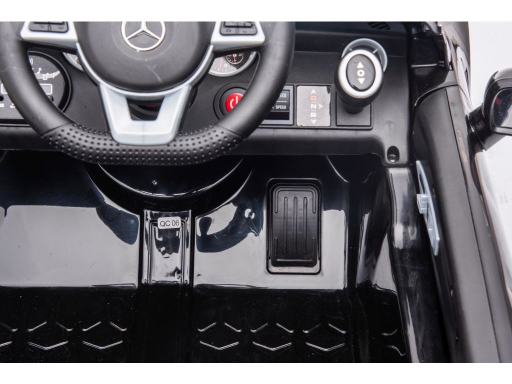 Dječji električni auto je licencirani proizvod marke Mercedes-Benz. Autić ima kotače od tvrde EVA pjene, koji su tihi i ne stvaraju buku tijekom vožnje. Za sigurnost djeteta brine se funkcija automatske kočnice, koja se aktivira odmah nakon što se noga makne s papučice gasa.