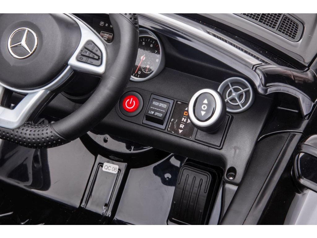 Dječji električni auto je licencirani proizvod marke Mercedes-Benz. Autić ima kotače izrađene od tvrde EVA pjene koji su tihi i ne uzrokuju buku tijekom vožnje. Za sigurnost djeteta brine se funkcija automatske kočnice, koja se aktivira odmah nakon što se noga makne s papučice gasa.