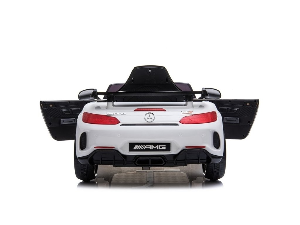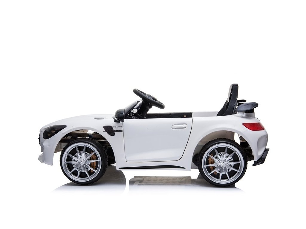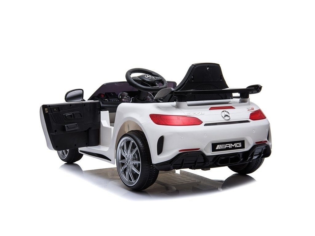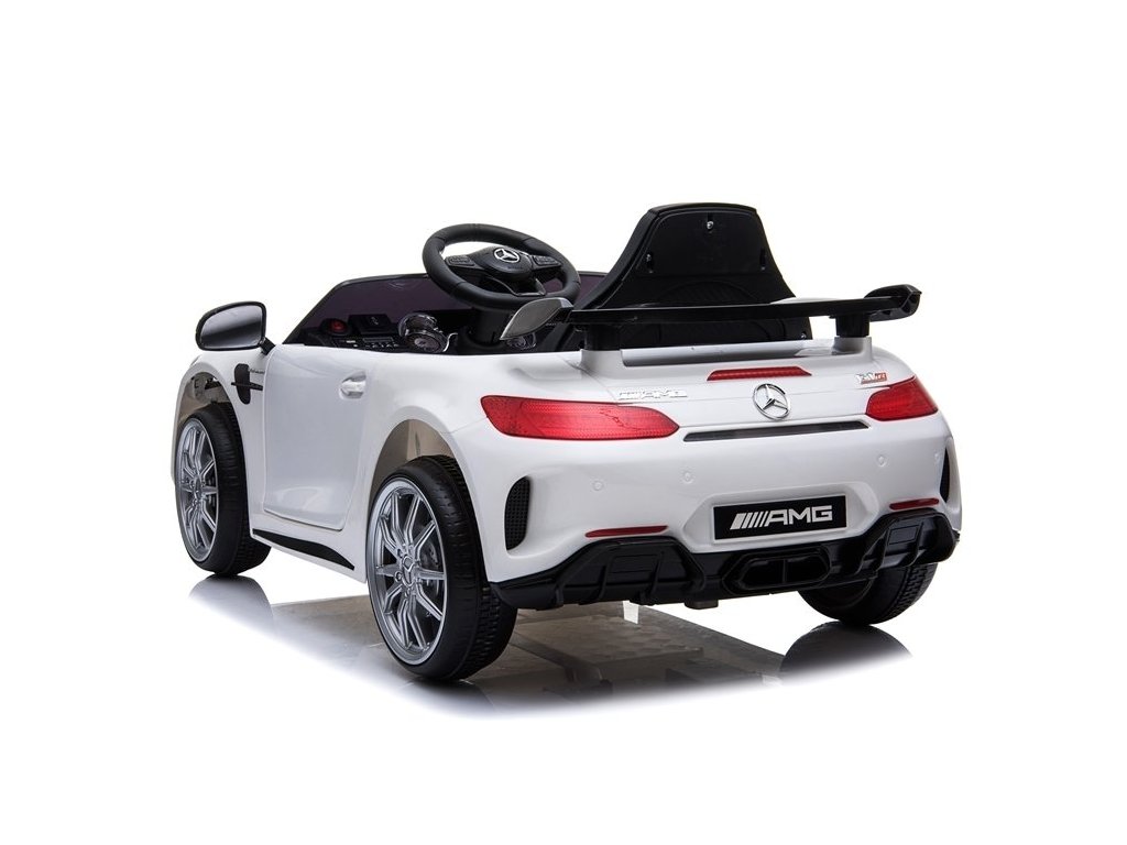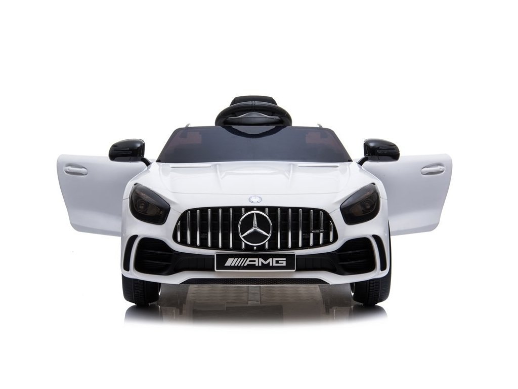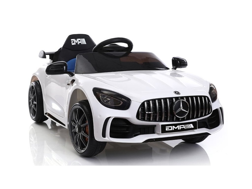 Auto na akumulator Mercedes GTR bijeli je vozilo koje će zasigurno privući pažnju svih prolaznika. Vozilo pokreće 12V4,5Ah baterija i dva 45W motora. Kombinacija ovih komponenata omogućuje djetetu vožnju brzinom od 3 do 5 km/h. Vožnju u električnom autu uljepšat će mekana EVA kotača i široko sjedalo s sigurnosnim pojasom.