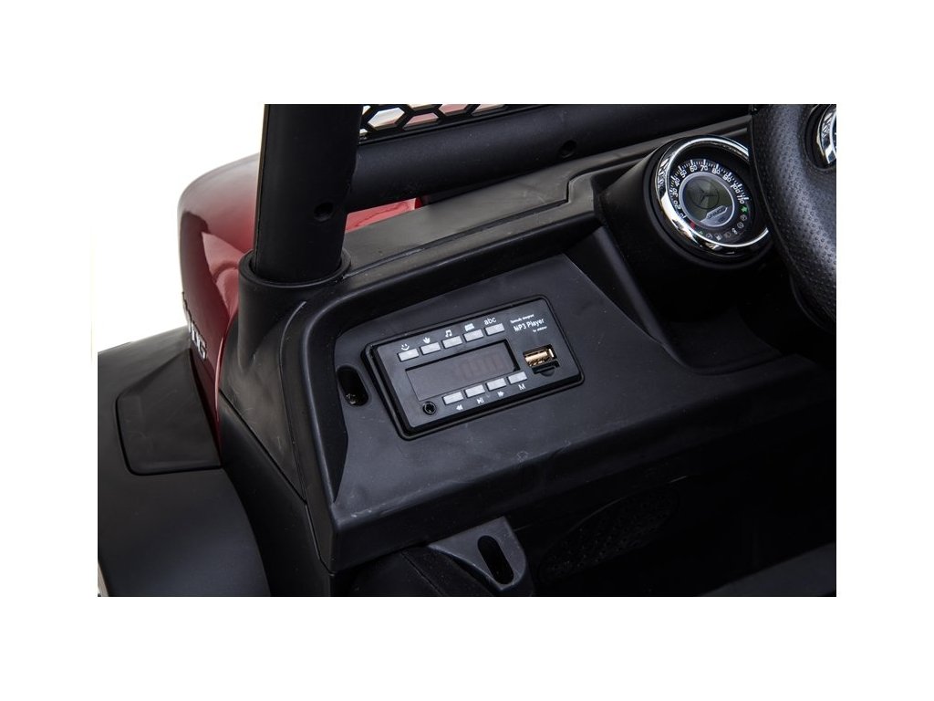 Četiri motora od 45W u kombinaciji sa 12V 14Ah baterijom omogućuju vožnju brzinom od 3 do 5 km/h, što će sigurno impresionirati malog vozača. Mekano sjedište omogućava udobno sjedenje tijekom putovanja, a glazbeni panel s USB ulazom čini vožnju još atraktivnijom. Brzinu električnog auta uvijek možete kontrolirati pomoću daljinskog upravljača. Ovaj model je namijenjen djeci od 3 godine, no i mlađi vozači ga mogu koristiti pod nadzorom roditelja.
