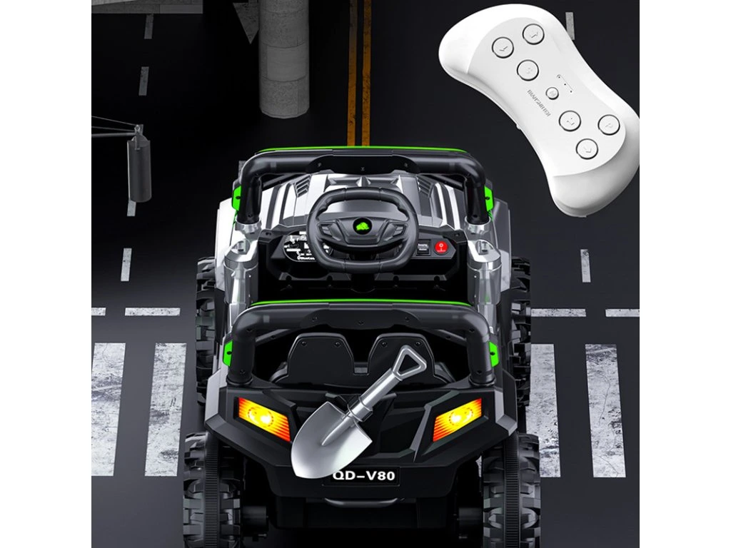 Ugrađeni digitalni audio player s USB ulazom i mogućnošću reprodukcije glazbe donosi još više zabave tijekom vožnje. Vaša djeca mogu uživati u svojoj omiljenoj glazbi za vrijeme vožnje. Detalji poput realističnih svjetala, zvučnih efekata i kontrola dodaju autentičnost, čineći vožnju još zabavnijom. Robusna konstrukcija podsjeća na prava terenska vozila.
