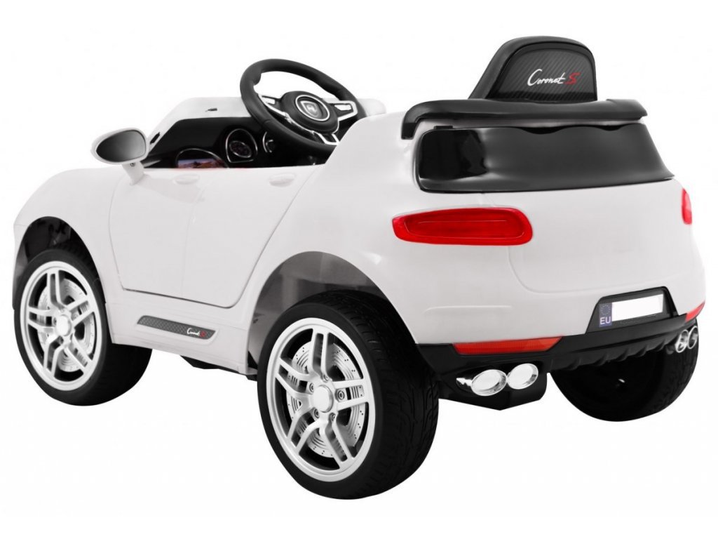 Dječji električni automobil Turbo-S u bijeloj boji. Električno vozilo opremljeno je prednjim i stražnjim svjetlima. Sadrži priključak za MP3, SD karticu i USB. Za sigurnost djeteta sjedalo je opremljeno sigurnosnim pojasom. Ako želite krenuti u vožnju, jednostavno se udobno smjestite u električni automobil, a zatim pritisnite gumb START. Set uključuje i daljinski upravljač za roditelje, koji možete koristiti kada dijete još ne zna samo voziti