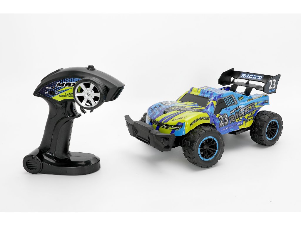 Robusna konstrukcija, lagano kućište i veliki terenski kotači omogućuju vožnju po različitim površinama. Daljinski upravljač s volanom pruža potpunu funkcionalnost upravljanja – naprijed, nazad, lijevo i desno.