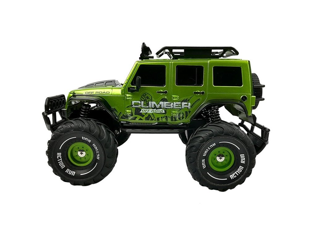 Terenski auto na daljinsko upravljanje Jeep, koji može savladati bilo koju prepreku. Savršeno funkcionira kako na asfaltu, tako i na neravnim kamenjem ili šumskom terenu. Mekani, gumeni kotači vozila osiguravaju visok stupanj prianjanja na različitim podlogama, a veliki amortizeri omogućuju vam prolazak kroz teške prepreke.