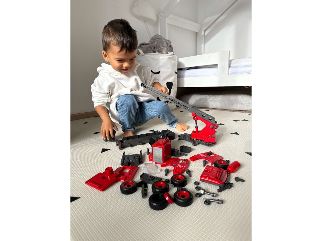 - Razvija misaone sposobnosti: Zahvaljujući raznim dodacima, djeca mogu postati mali graditelji koji razmišljaju i istražuju kako sastaviti vatrogasni kamion.