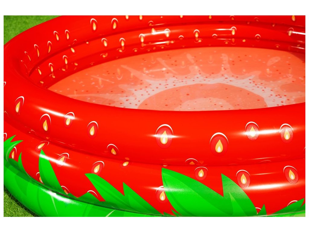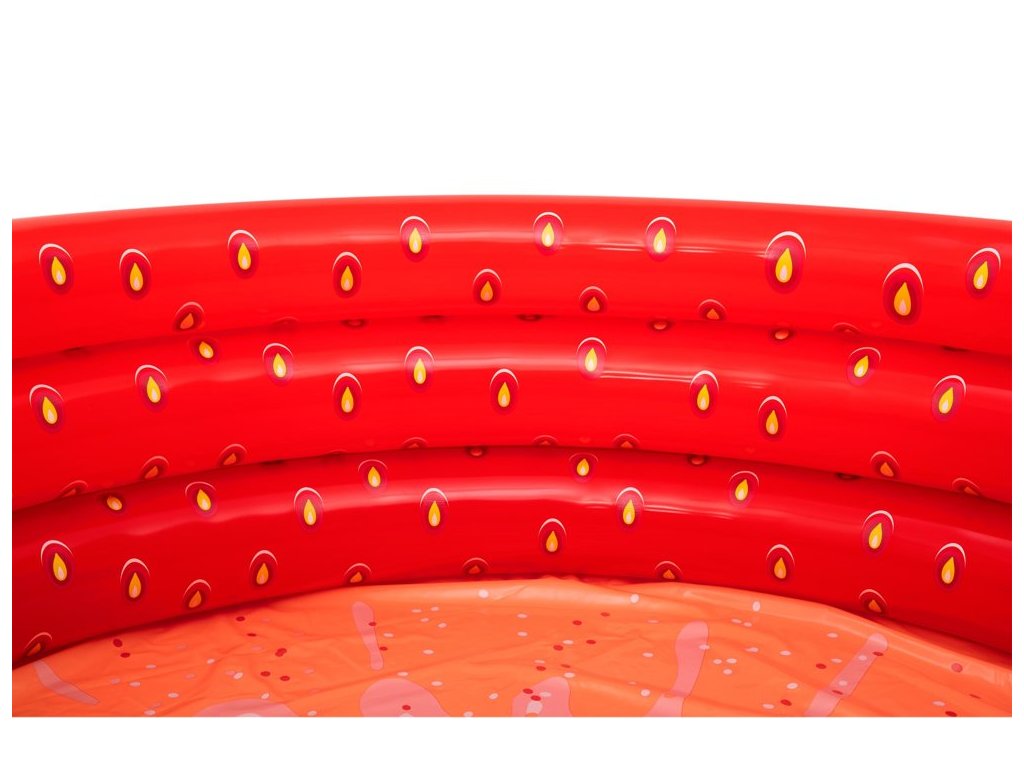 Bazen na napuhavanje s kreativnim motivom jagode osigurat će vašem djetetu zabavu i rekreaciju u vodi. Bazen je dizajniran kako bi potaknuo djecu na kretanje i uživanje na svježem zraku. Sa svojim kompaktnim dimenzijama, idealan je za djecu od 2 godine. Jednostavan je za napuhavanje i ispumpavanje, stoga skladištenje nije problem. Napuhani zidovi osiguravaju udobnost i sigurnost za najmlađe. Izrađen od izdržljivog PVC materijala, otporan je na oštećenja.