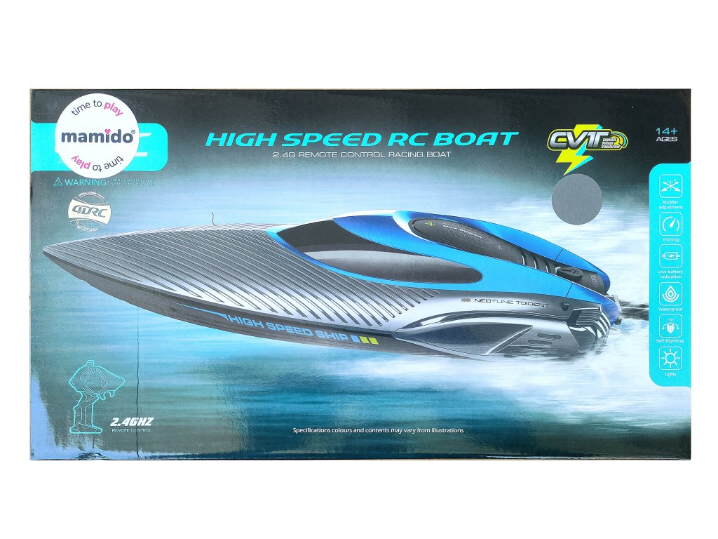 Brodica je opremljena praktičnim funkcijama – podešavanje kormila, podrezivanje, vodootporni dizajn, kao i funkcijom samostalnog ispravljanja koja automatski vraća brodicu na pravo mjesto kada se prevrne. Također uključuje indikator niske razine baterije i svjetlosne efekte za bolju vidljivost na vodi.