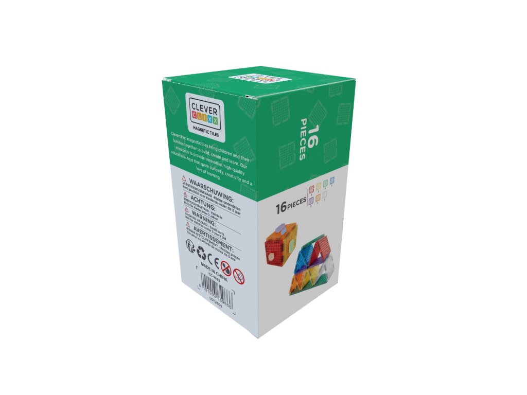 Cleverclixx je izrađen od izdržljive ABS plastike i ima posebno jake magnete koji sve čvrsto drže zajedno. Proizvod zadovoljava sve sigurnosne standarde (CE) i potpuno je kompatibilan s drugim popularnim magnetskim setovima za gradnju , kao što su Connetix Tiles.