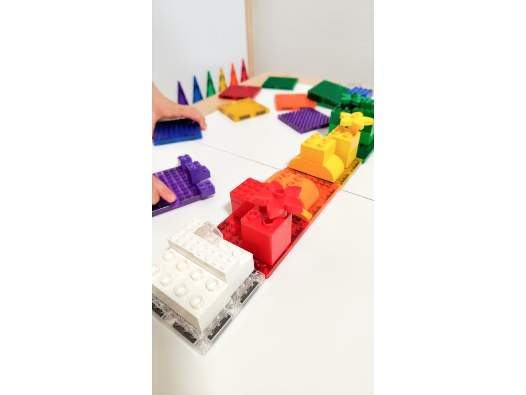 Pripremite se za potpuno novu razinu kreativnosti! Cleverclixx Brick Tiles Intense set uključuje 16 šarenih magnetskih pločica s izbočinama koje vam omogućuju spajanje LEGO® i LEGO DUPLO® kockica . Vaše dijete može jednostavno kombinirati svoje omiljene setove za gradnju i maksimalno proširiti mogućnosti igre.
