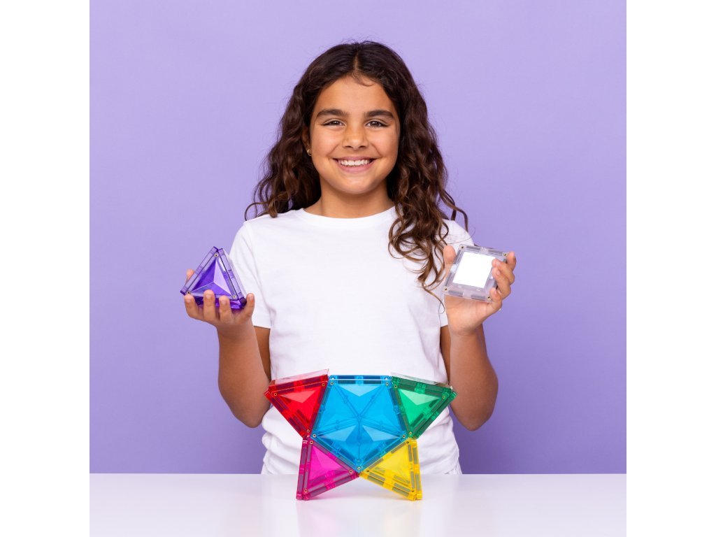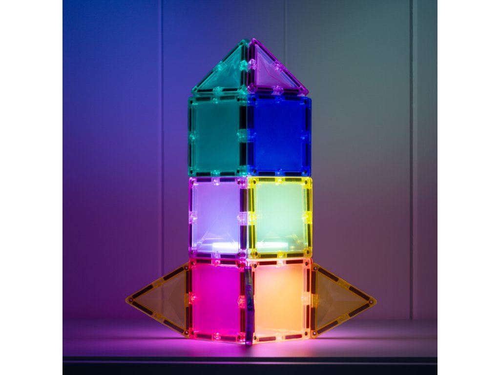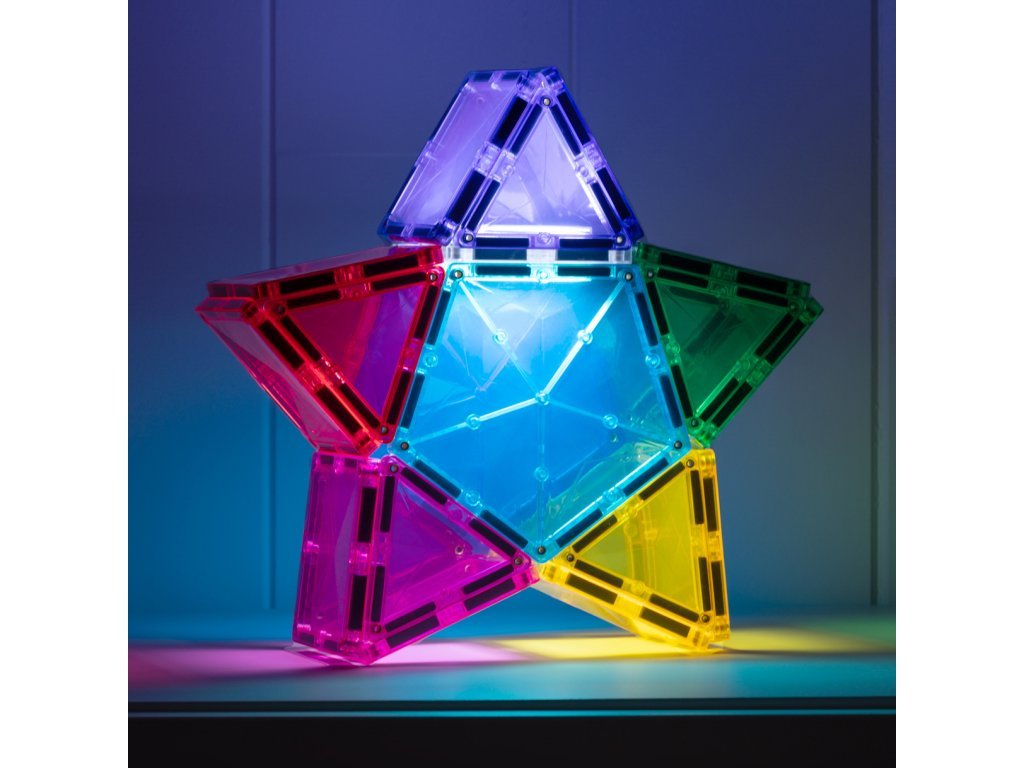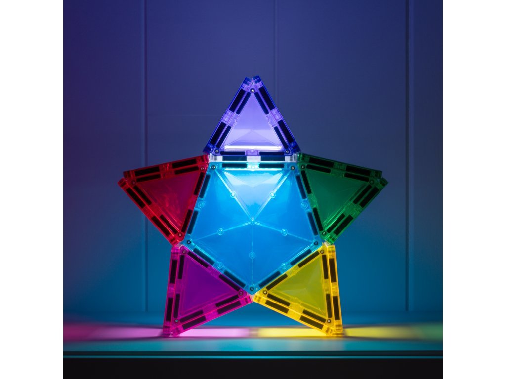 Zahvaljujući kombinaciji kvadrata, trokuta i peterokuta, djeca otkrivaju nove mogućnosti konstrukcije, dok svjetlosni element dodaje svakoj građevini čarobnu atmosferu. Set razvija STEAM vještine – uči djecu razumijevanju svjetla, boja, odraza i sjena, i to sve na razigran način.