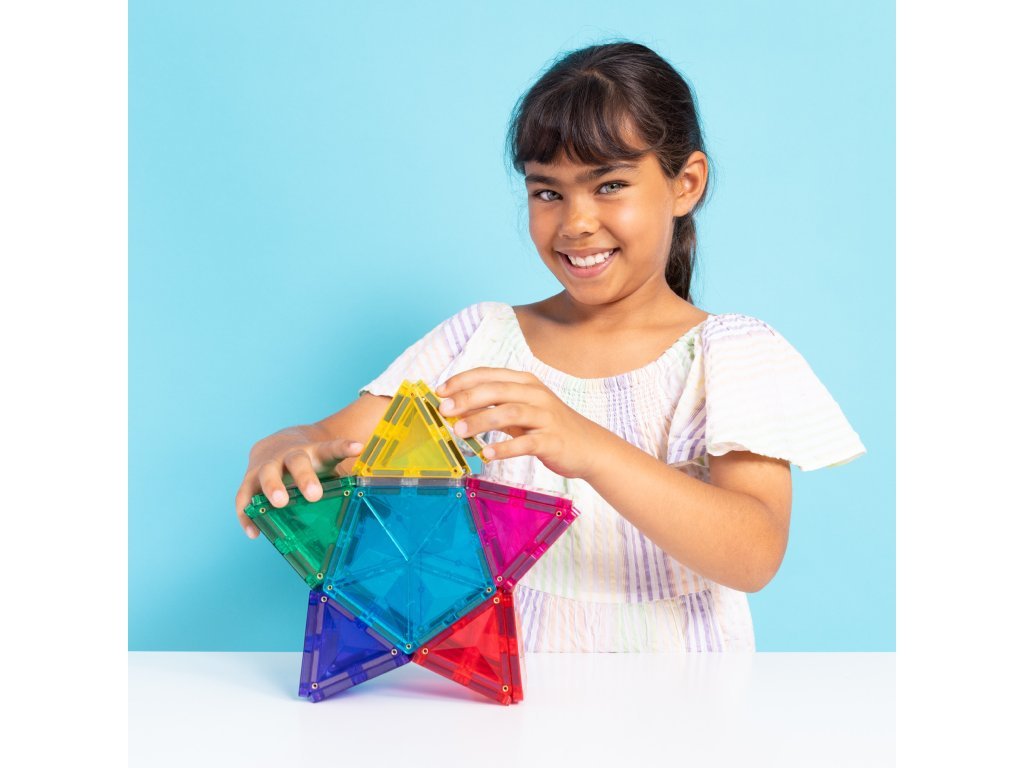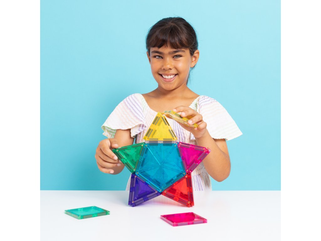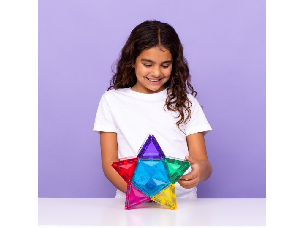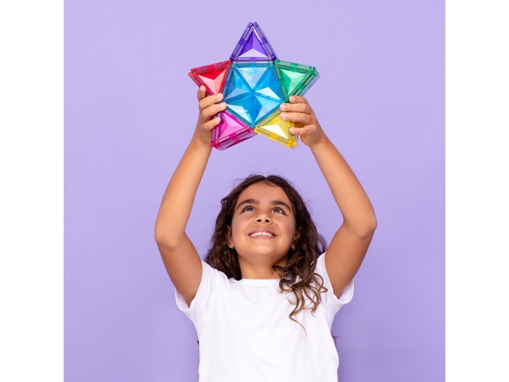 Zahvaljujući kombinaciji kvadrata, trokuta i peterokuta, djeca otkrivaju nove mogućnosti konstrukcije, dok svjetlosni element dodaje svakoj građevini čarobnu atmosferu. Set razvija STEAM vještine – uči djecu razumijevanju svjetla, boja, odraza i sjena, i to sve na razigran način.