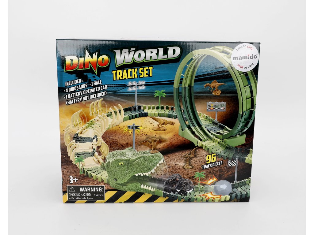 Fantazija oživljava u pretpovijesti. Komplet Dino World nudi fleksibilnu trkaću stazu s savitljivim dijelovima, velikom petljom, kapijom u obliku glave dinosaura i dodacima za kreiranje vlastitih staza. U kompletu su također 4 dinosaura – idealna za dječji svijet pustolovine. Auto vozi po stazi sam (napajanje na baterije).