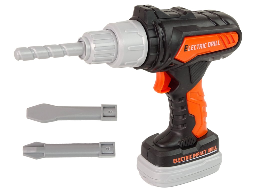 Mali majstor ne samo da će se osjećati odgovorno, već će mu ova igra također pomoći u razvoju. Nakon umetanja baterija u bušilicu i pritiska na gumb, svrdlo se vrti i emitira realističan zvuk. Dva zamjenjiva nastavka omogućuju prilagodbu svakom tipu vijka.