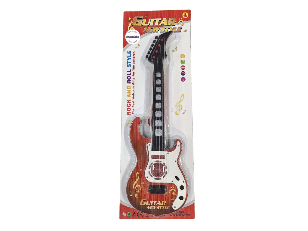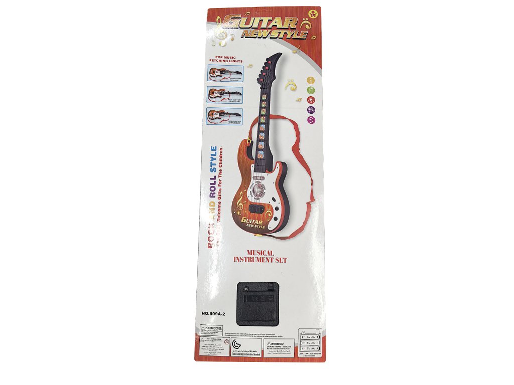 S ovom dječjom električnom gitarom sa svjetlima i zvukovima, svaki mali glazbenik postat će zvijezda pozornice. Gitara ima atraktivan dizajn s drvenim uzorkom, dopunjen šarenim svjetlima i melodijama koje prate svaki pritisak tipke. Zahvaljujući priloženom remenu, gitaru je moguće udobno nositi i svirati kao pravi glazbenik. Gitara razvija ritam, sluh i motoriku te potiče kreativnu igru.