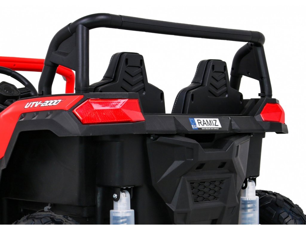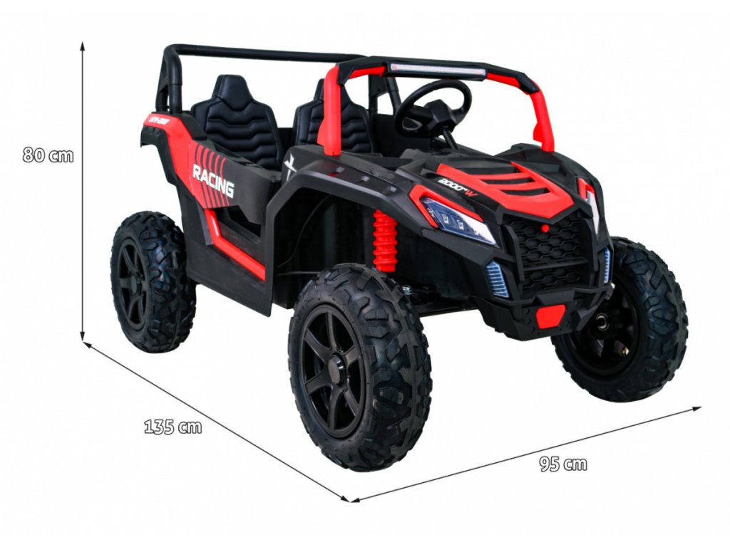 Dječje auto na akumulator Buggy UTV Strong ima snažan električni motor 180W i napuhana gumena kotača. Zahvaljujući nosivosti do 100 kg i širokom sjedalu, u autić se udobno mogu smjestiti dvoje djece.