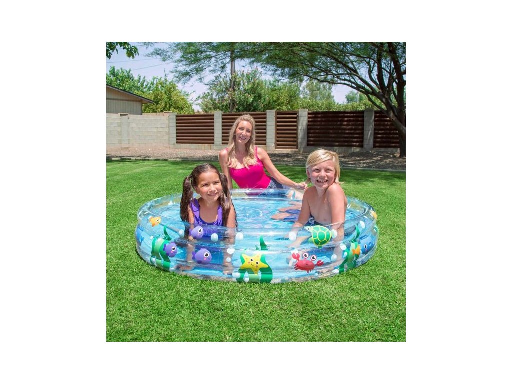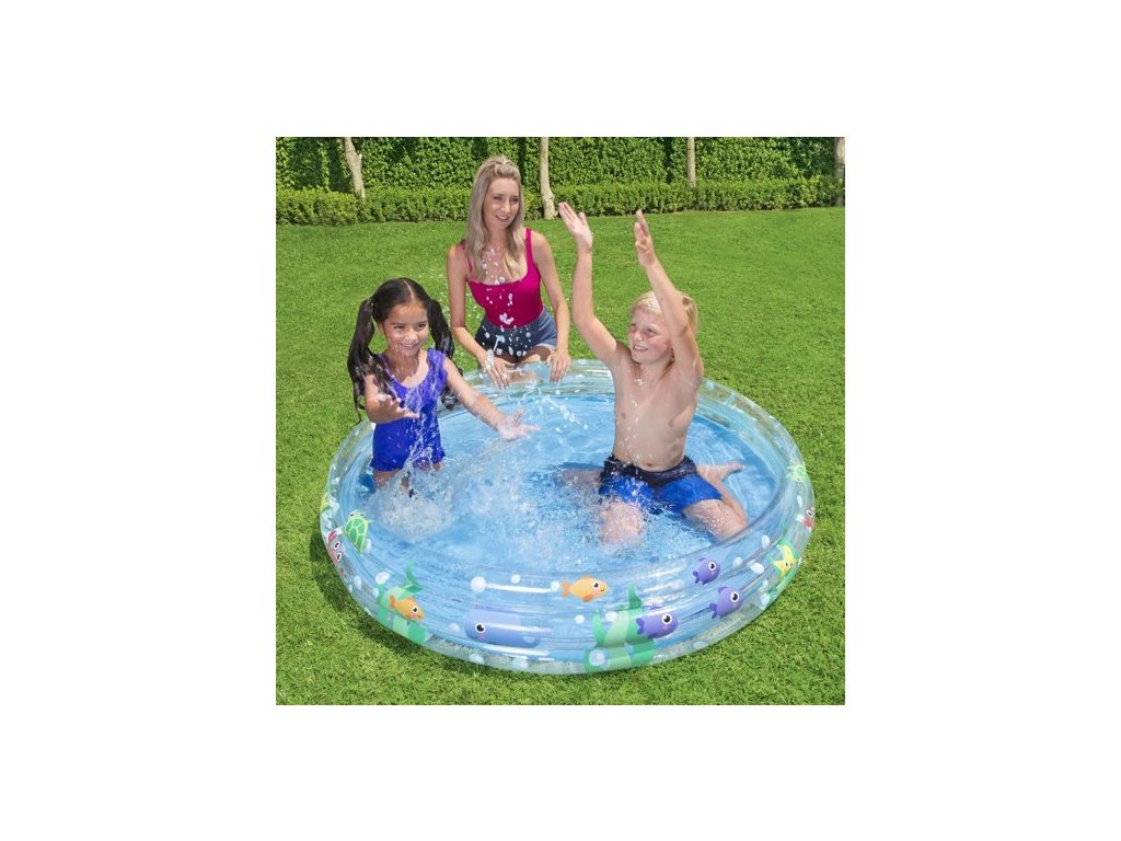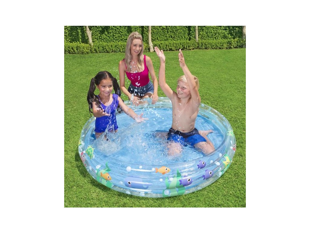 Dječji bazen na napuhavanje osigurat će vašem djetetu kretanje i zabavu u vodi. Zahvaljujući svojim malim dimenzijama, idealan je za djecu od 3 godine nadalje. Lako se napuhuje i ispuhuje, što ga čini jednostavnim za skladištenje.