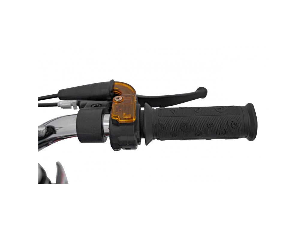 Oprema uključuje vodootporno sjedalo i disk kočnice. Motocikl omogućuje vožnju naprijed i ima nosivost do 70 kg.