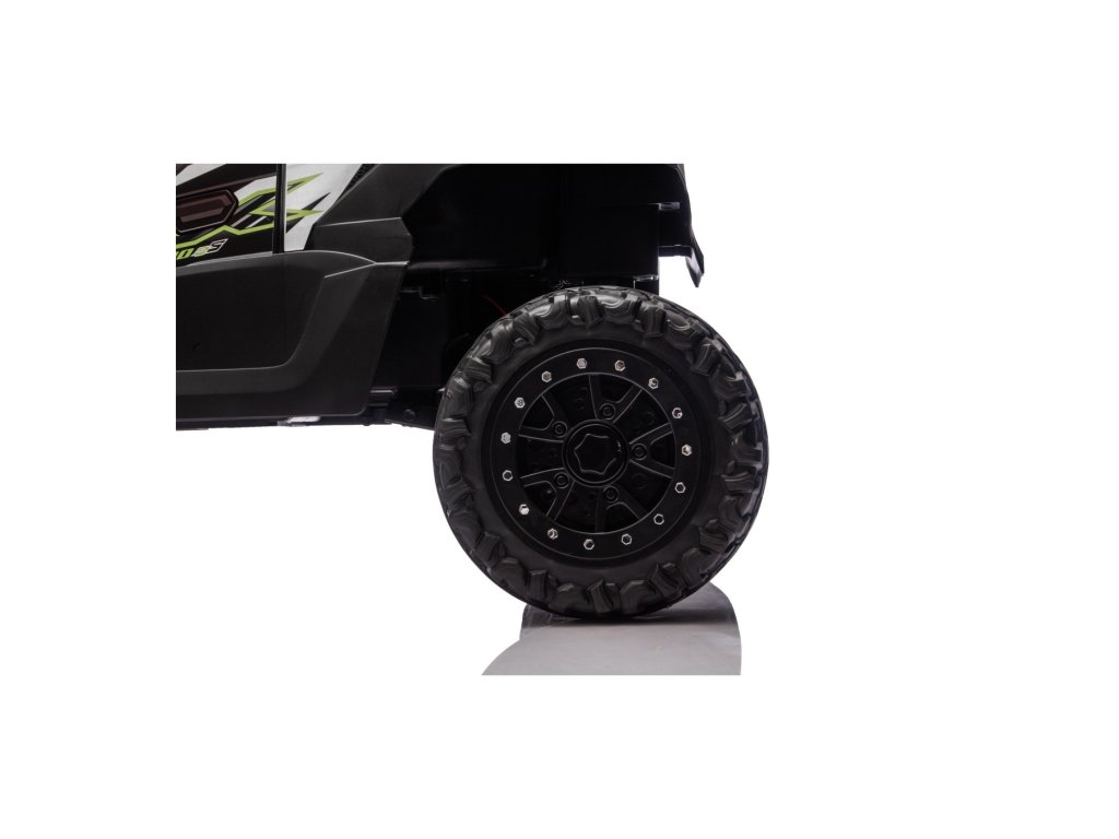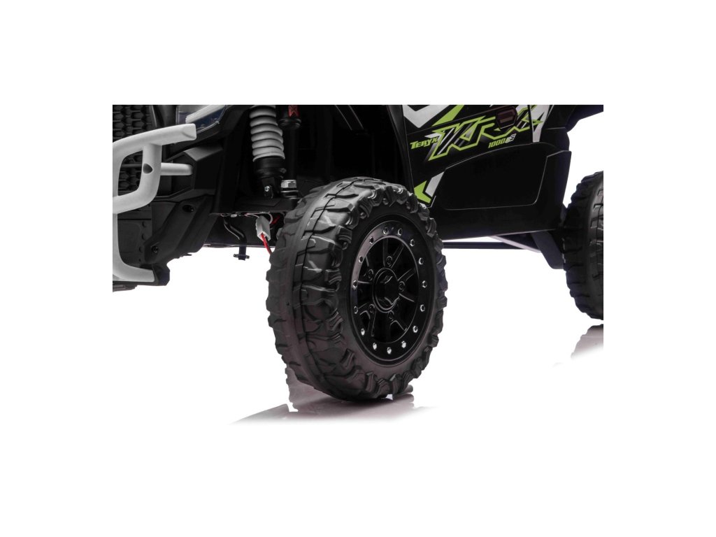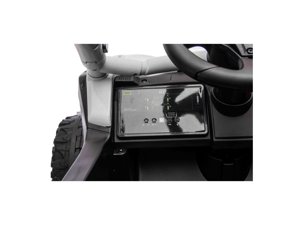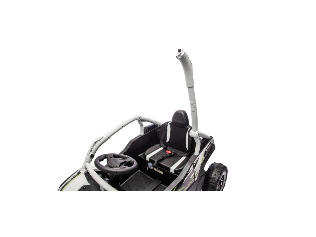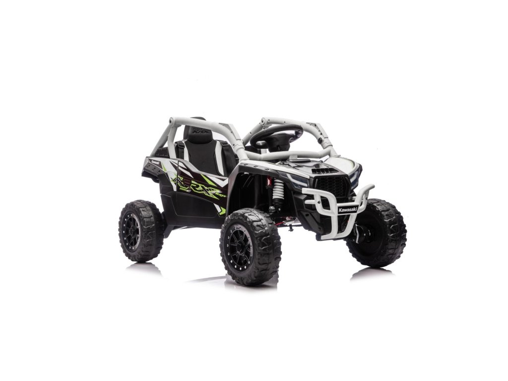 Stilizirani dječji autić Buggy Kawasaki TERYX KRX1000 idealan je izbor za male vozače koji vole vožnju po terenu i po glatkoj površini. Snažni 24V sustav s četiri motora (2× 20W sprijeda, 2× 45W straga) osigurat će dovoljno snage čak i za neravni teren. Aić je opremljen mekim EVA kotačima, udobnim kožnim sjedalom i sigurnosnim pojasevima. Zahvaljujući daljinskom upravljaču s funkcijom STOP, roditelji uvijek imaju kontrolu nad vozilom. Oprema uključuje LED svjetla, audio panel s Bluetoothom, MP3, USB ulazom i drugim funkcijama.