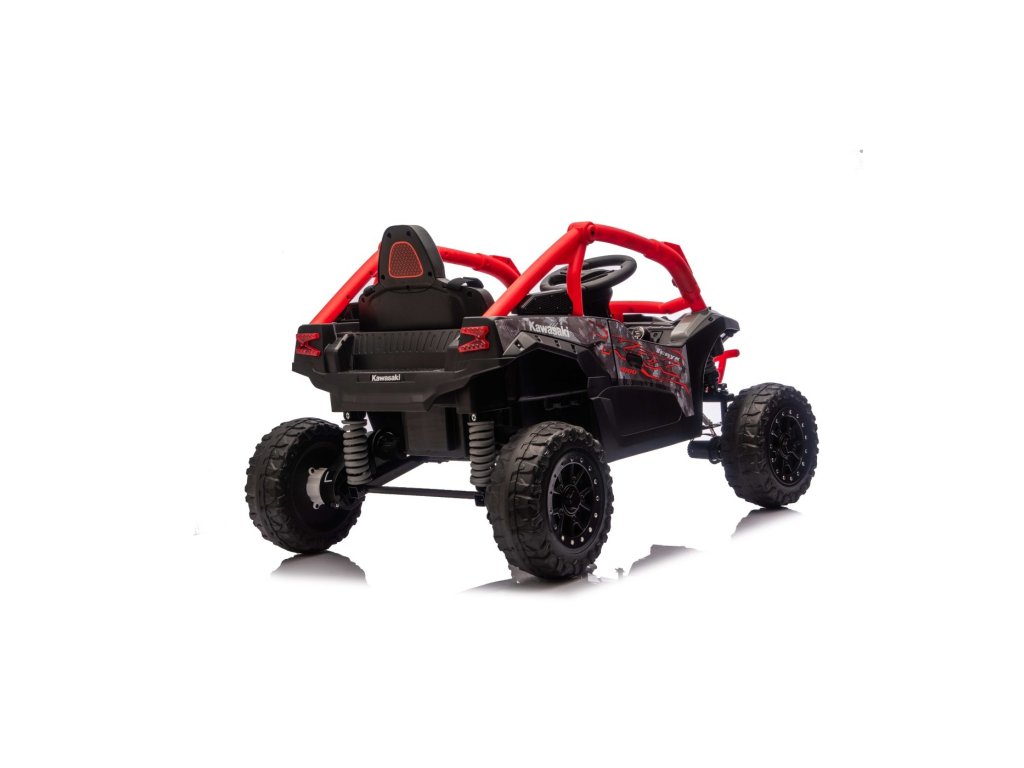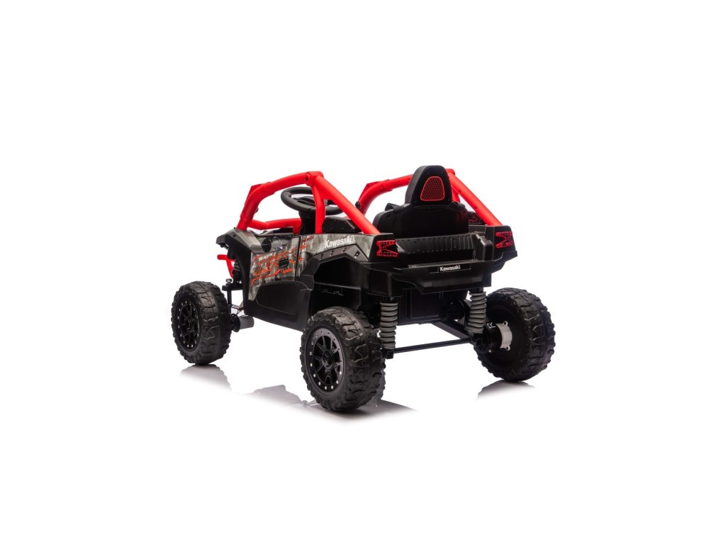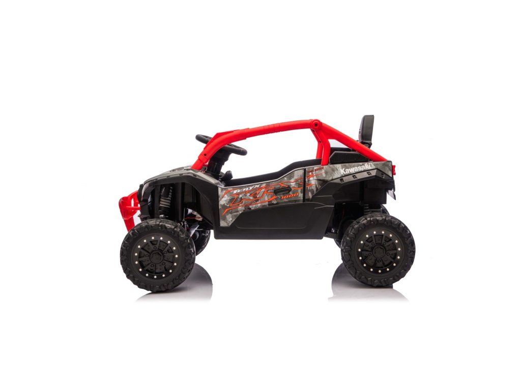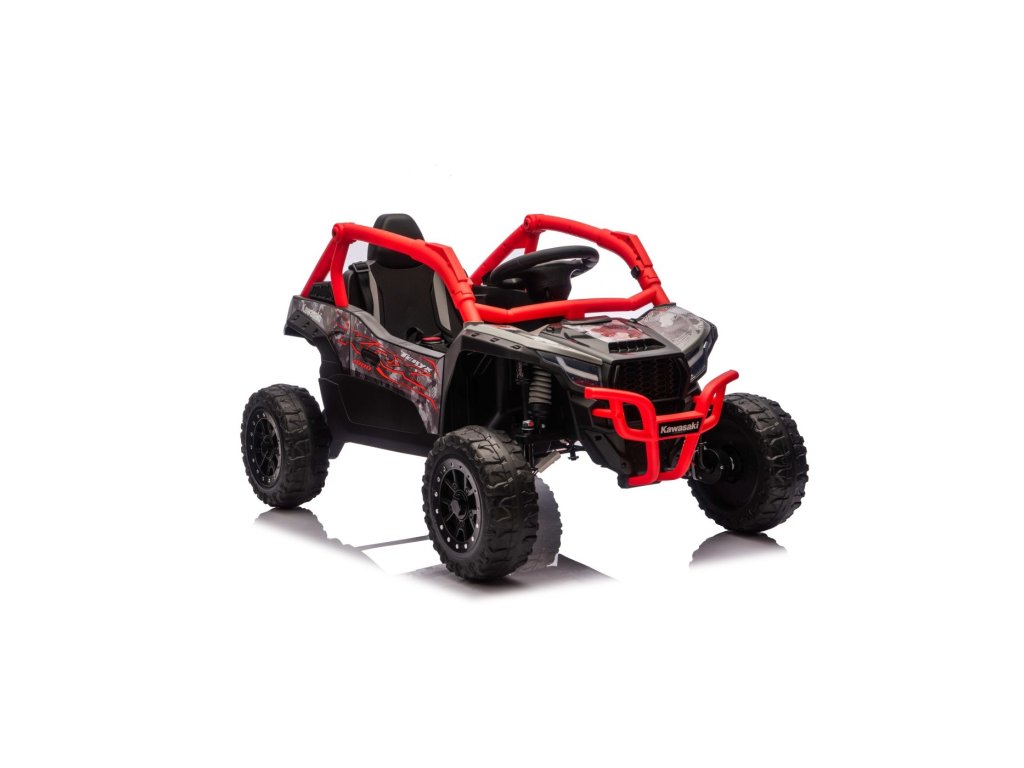Stilizirani dječji autić Buggy Kawasaki TERYX KRX1000 idealan je izbor za male vozače koji vole vožnju po terenu i po glatkoj površini. Snažni 24V sustav s četiri motora (2× 20W sprijeda, 2× 45W straga) osigurat će dovoljno snage čak i za neravni teren. Aić je opremljen mekim EVA kotačima, udobnim kožnim sjedalom i sigurnosnim pojasevima. Zahvaljujući daljinskom upravljaču s funkcijom STOP, roditelji uvijek imaju kontrolu nad vozilom. Oprema uključuje LED svjetla, audio panel s Bluetoothom, MP3, USB ulazom i drugim funkcijama.
