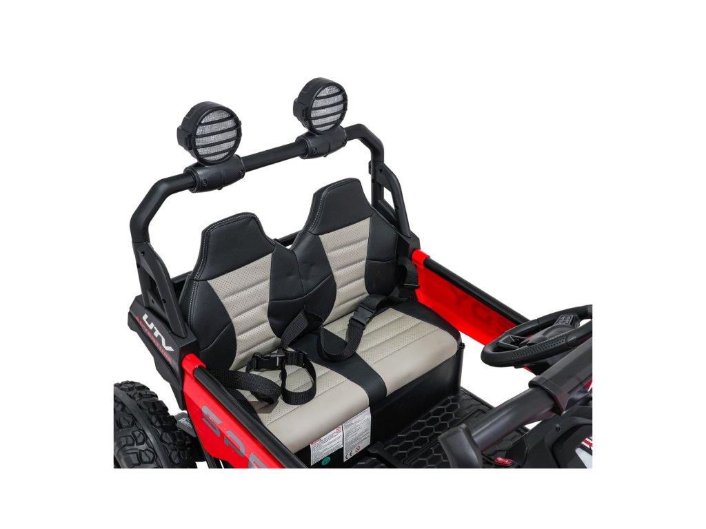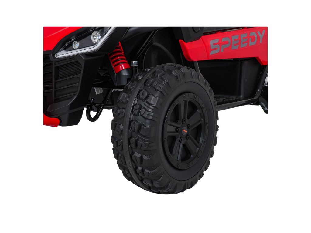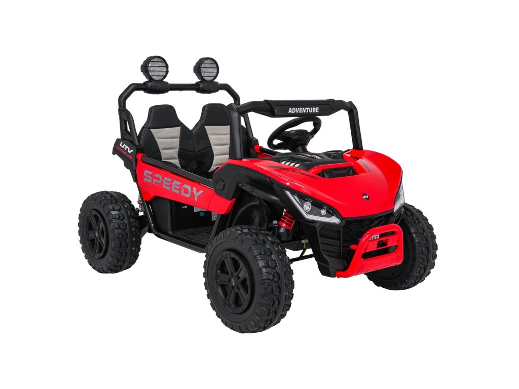 SPEEDY 4x4 Buggy s pogonom na sva četiri kotača idealan je izbor za male avanturiste. Četiri snažna motora ukupne snage 800 W, mekani kotači od EVA pjene i stražnji amortizeri osiguravaju glatku vožnju čak i na zahtjevnijem terenu. Automobil je opremljen sigurnosnim pojasevima, LED svjetlima i praktičnim daljinskim upravljačem s funkcijom STOP.