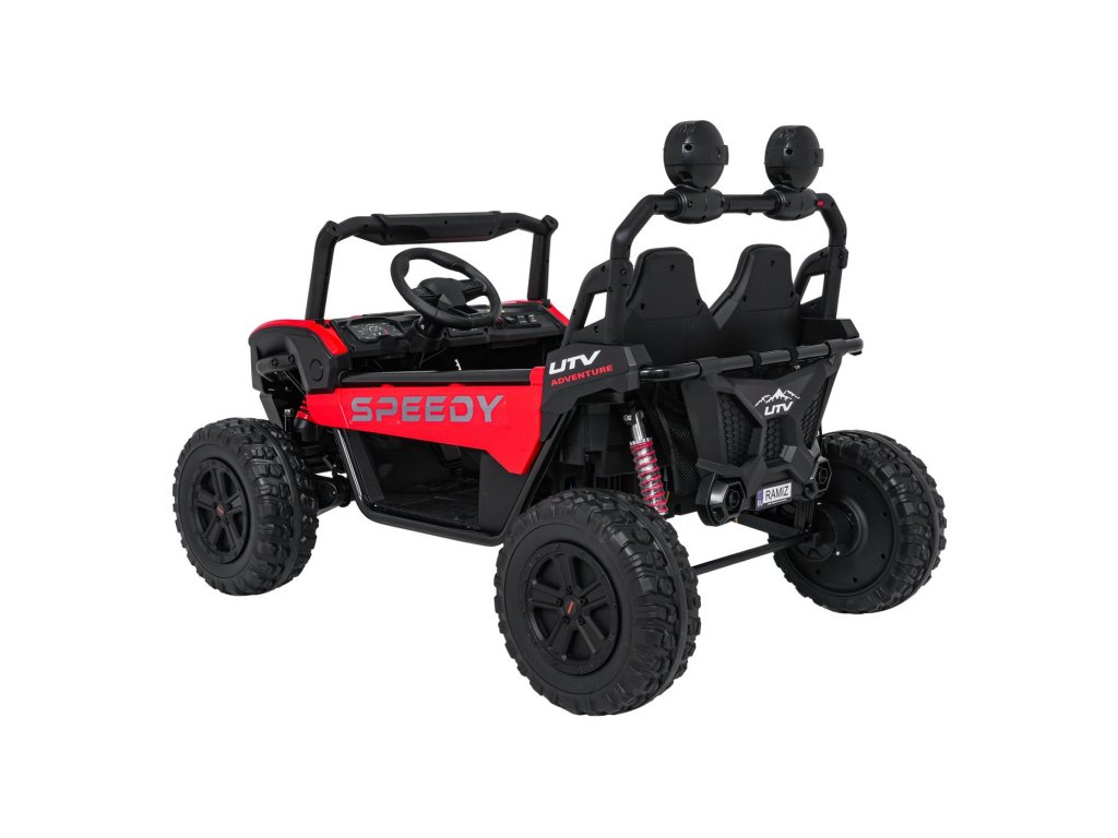Oprema uključuje glazbenu ploču s MP3, USB, AUX, Bluetooth priključcima i unaprijed snimljenim melodijama. Zahvaljujući prostranom dvosjedu od eko kože i prtljažniku na stražnjem dijelu, Buggy SPEEDY je odličan suputnik za svaku vožnju.