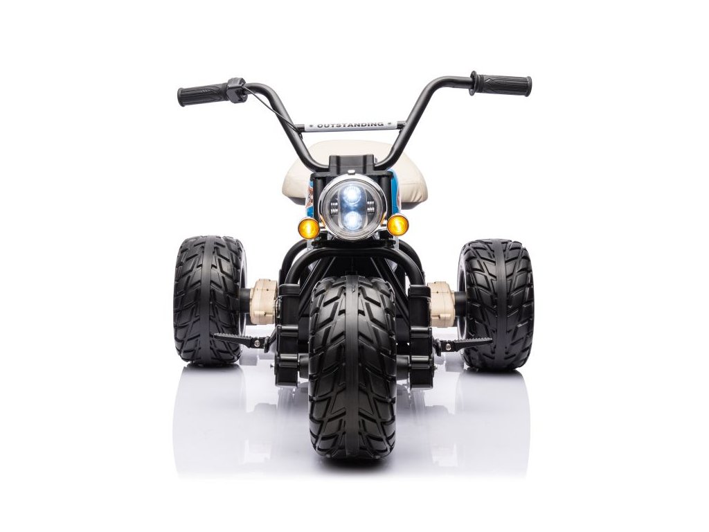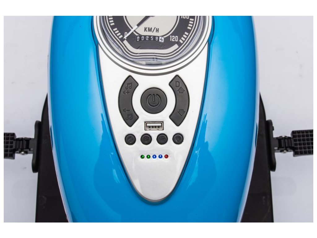 Dječji električni motocikl dolazi na pjenastim EVA kotačima koji su tihi i ne smetaju u vožnji. Dijete će sjediti u udobno oblikovanom sjedalu presvučenom eko kožom , a zvučni efekti koji se mogu reproducirati preko USB ulaza zasigurno će učiniti vožnju ugodnijom.