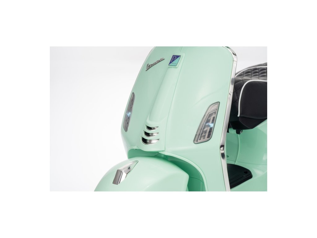 Vespa izdrži 1 sat senzacionalne vožnje. Za sigurnost djeteta brinu se bočni kotači i automatska kočnica koja zaustavlja skuter kada dijete spusti nogu s papučice gasa. Dječji skuter je prikladan za djecu od 3 godine.