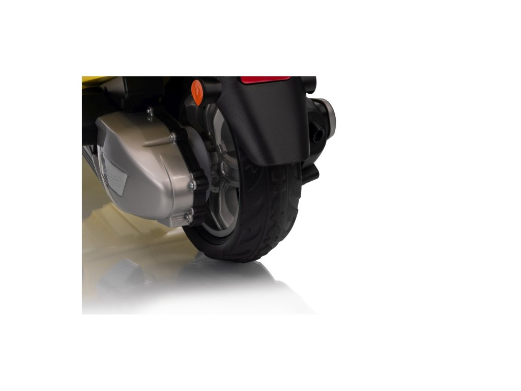 Tko ne bi poznavao skuter marke Vespa? Ovaj legendarni skuter može voziti i Vaše dijete, zahvaljujući ovom licenciranom modelu. Skuter ima kvalitetno sjedalo presvučeno mekom ekološkom kožom i mekane EVA kotače. Uz sve to, tu su i prekrasna prednja i stražnja LED svjetla te mogućnost reprodukcije MP3 datoteka, tako da dijete može slušati svoju omiljenu pjesmu tijekom vožnje i istovremeno usavršavati svoje vozačke vještine.