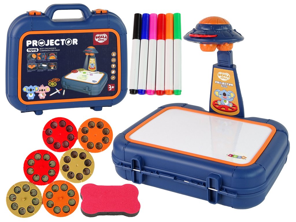 Projektor u obliku UFO-a omogućava projektiranje slika koje djeca mogu precrtavati na bijeli dio kovčega. U kompletu dolazi 6 obojenih flomastera i spužvica za brisanje, što omogućuje vašem djetetu da izrazi svoju maštu. Dodatno, stalak omogućava podešavanje visine projekcije prema željama vašeg djeteta.