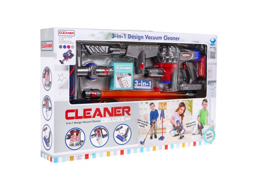 Dječji robotski usisivač 3u1 ne smije nedostajati u niti jednoj dječjoj sobi. Usisivač uči dijete kako održavati red, proizvodi zvukove usisavanja i usisava pridodane polistirenske kuglice koje se nakon usisavanja u spremniku raspršuju. Može se lako i brzo pretvoriti u mali ručni usisivač.
