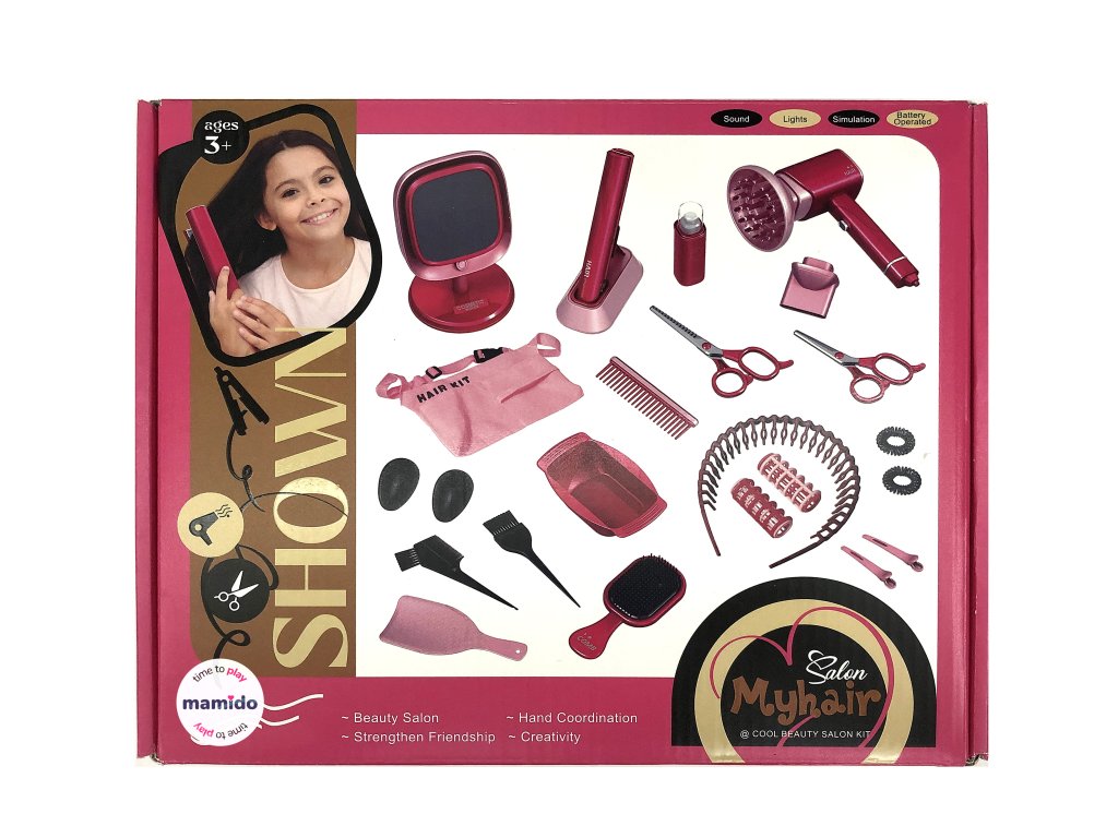Set je izvrsna igračka za razvoj dječje mašte, fine motorike i igre na zanimanje. Sušilo za kosu emitira realne zvukove i svjetlosne efekte, što donosi još više zabave. Zahvaljujući raznolikom priboru, djeca se mogu sama ili s prijateljima igrati frizerskog salona.
