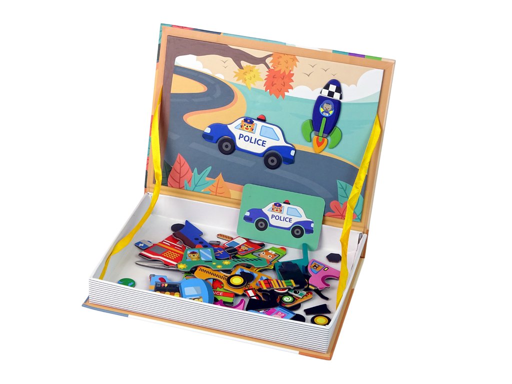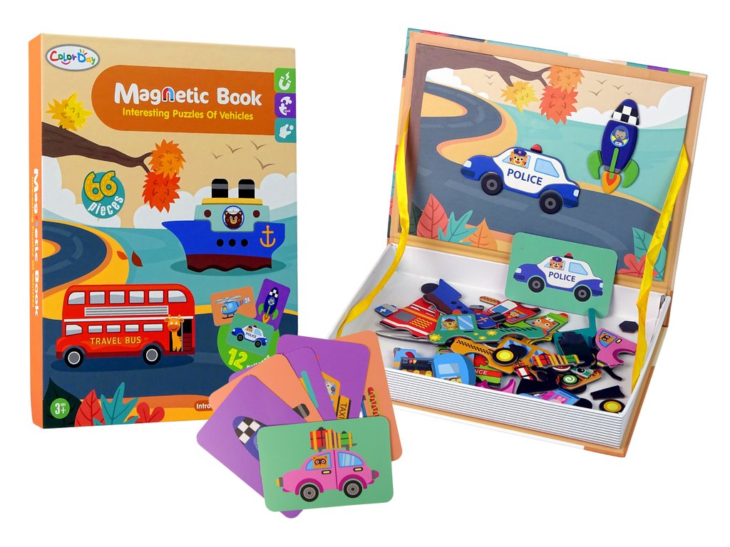 Sada sadrži kartice koje prikazuju pojedinačna prometna sredstva. Zadatak djeteta je složiti magnetne elemente prema uzorku tako da u potpunosti reproduciraju zadanu sliku. Puzzle će vašem djetetu dugo služiti zahvaljujući mogućnosti kreiranja različitih, kreativnih slika. Poticat će djetetov osjećaj za umjetnost i vježbati logičko razmišljanje.