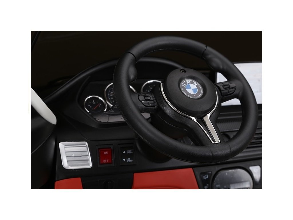 Dječji električni autić BMW X6M s inovativnim daljinskim upravljanjem namijenjenim roditeljima. Električni autić ima udobno sjedalo, a za sigurnost djeteta na sjedalu je postavljen sigurnosni pojas. Autić je opremljen instrument pločom, volanom, svjetlećim prednjim svjetlima i audio panelom. Vozilo se može upravljati na dva načina, ili pomoću daljinskog upravljača koji je namijenjen roditeljima, kada roditelj sam bira smjer i brzinu vožnje ili dijete može voziti autić potpuno samostalno. Kotači električnog autića su mekani pjenasti i omogućuju tako glatku i ugodnu vožnju. BMW X6M za svakog ljubitelja velikih autića!