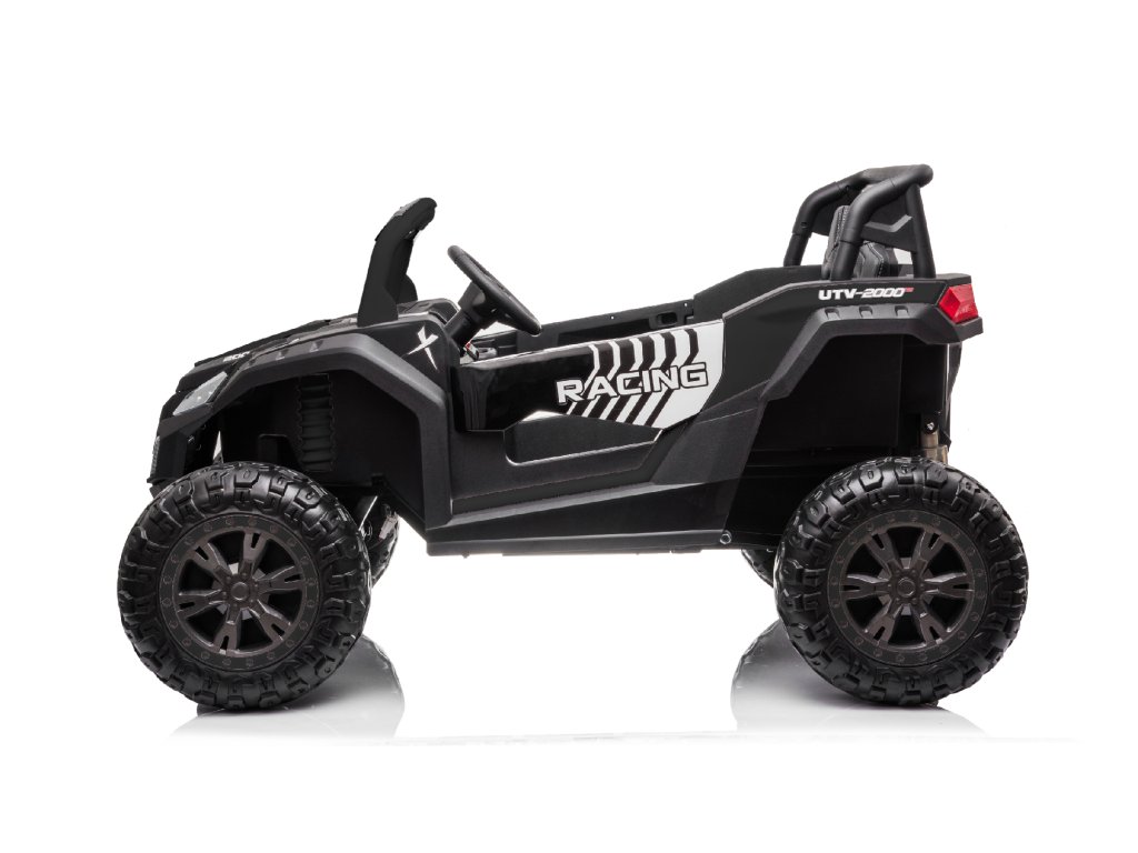 Dječji električni automobil Buggy UTV s četiri snažna elektromotora od 200 W. Igrački automobil s lakoćom se može nositi s bilo kojim terenom. Dvoje djece može udobno sjediti u sjedalici, jer automobil ima nosivost do 60 kg .