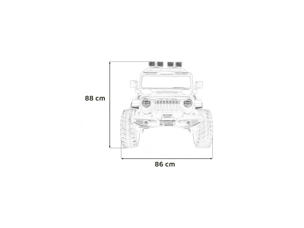 Automobilom možete upravljati pomoću daljinskog upravljača koji radi na frekvenciji od 2,4 GHz . Daljinski upravljač ima tri brzine i sigurnosnu tipku STOP koja odmah zaustavlja automobil pritiskom. Sjedalo je presvučeno eko kožom i ima sigurnosne pojaseve .