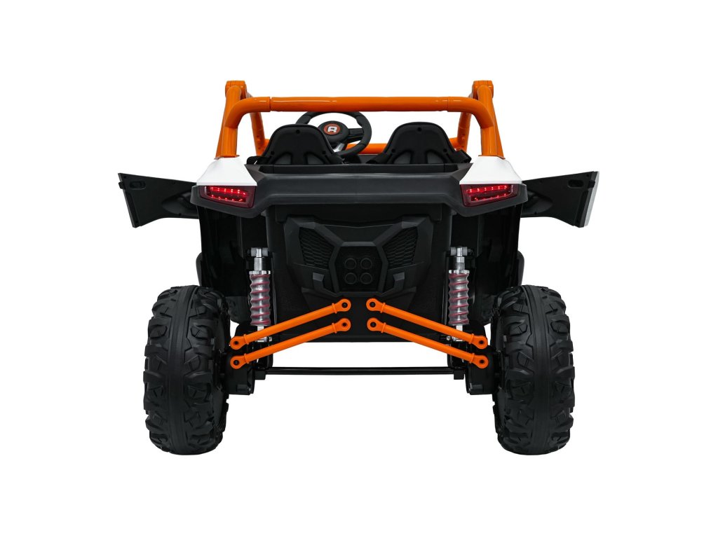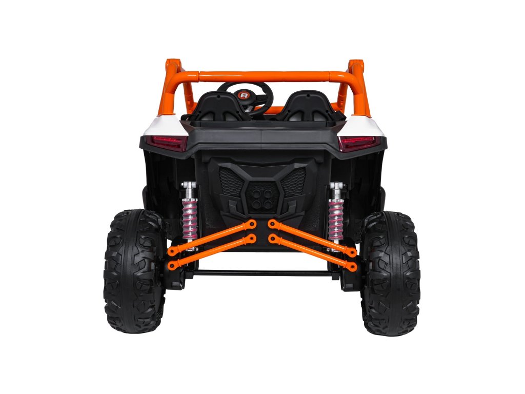Dječji električni automobil RACING Road 2000 24V robustan je i svestran model za dva mala vozača koji žele uživati u pravoj avanturi. Zahvaljujući četiri snažna motora (4 × 120W) i snažnoj bateriji od 24V 7Ah, automobil se može nositi ne samo s glatkim površinama, već i s blago neravnim terenom. Mekani kotači od EVA pjene i podesivi stražnji ovjes osiguravaju glatku vožnju bez nepotrebnih trzaja, dok funkcija mekog pokretanja doprinosi sigurnosti i udobnosti.