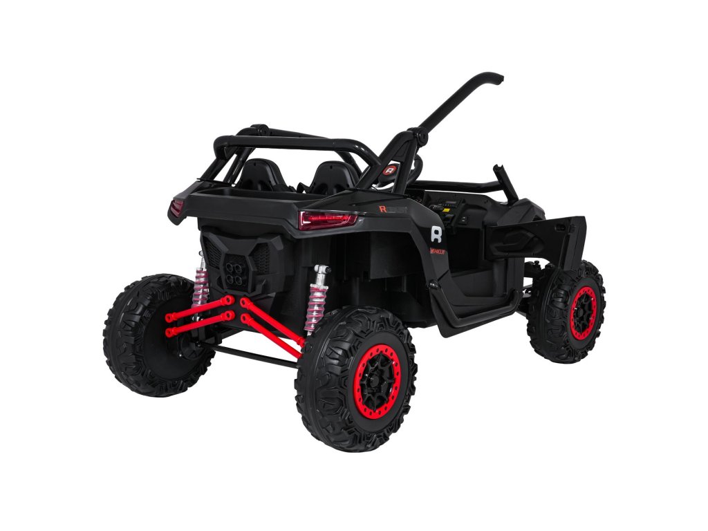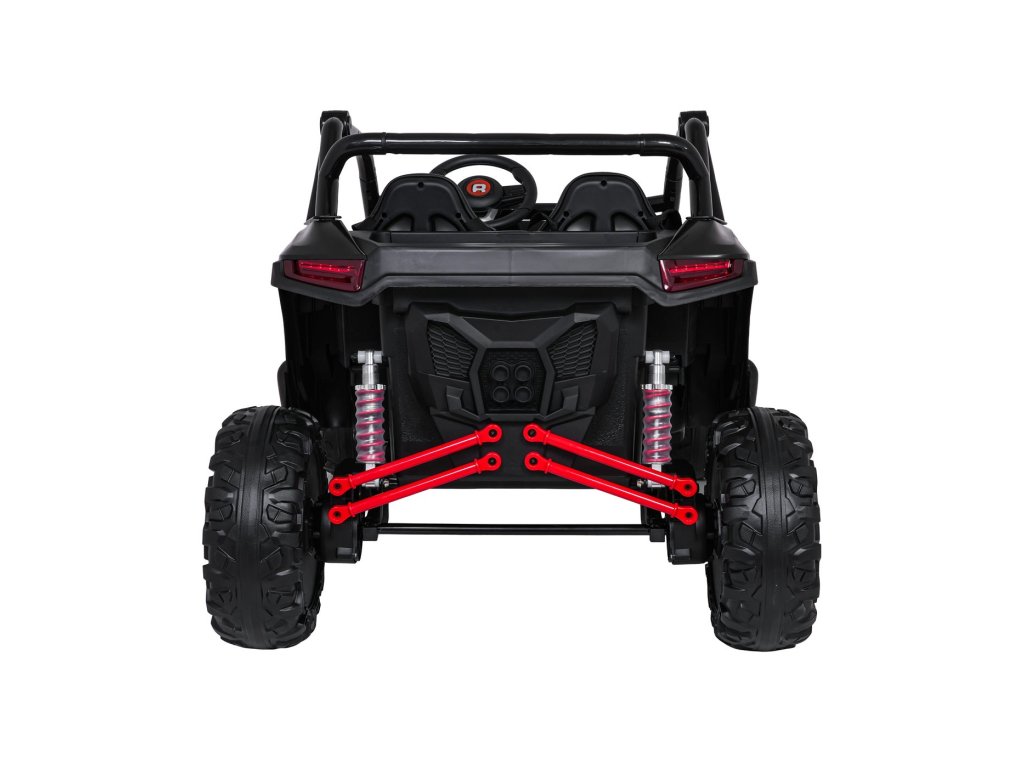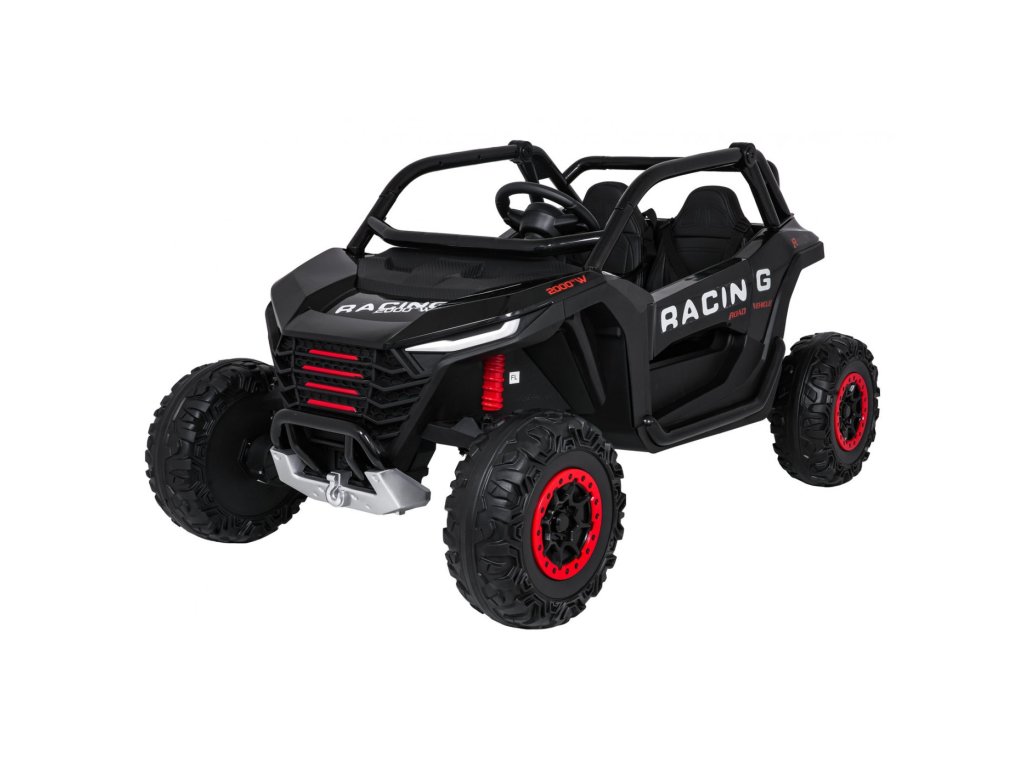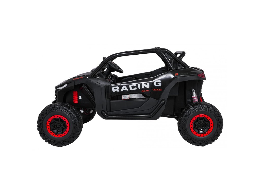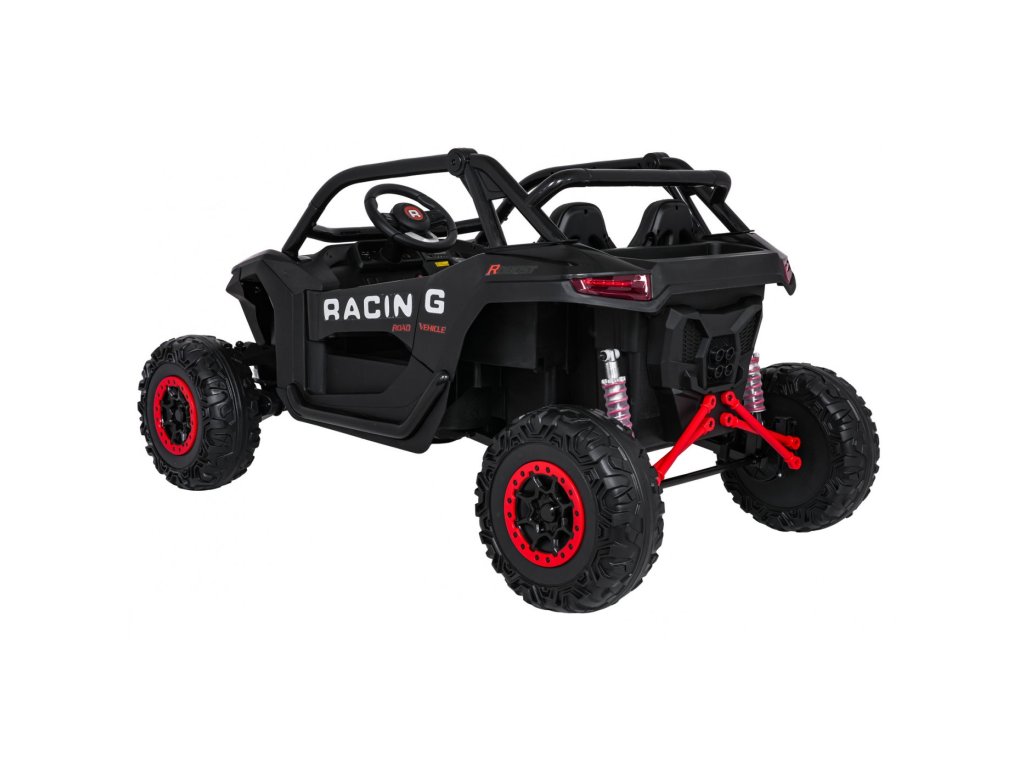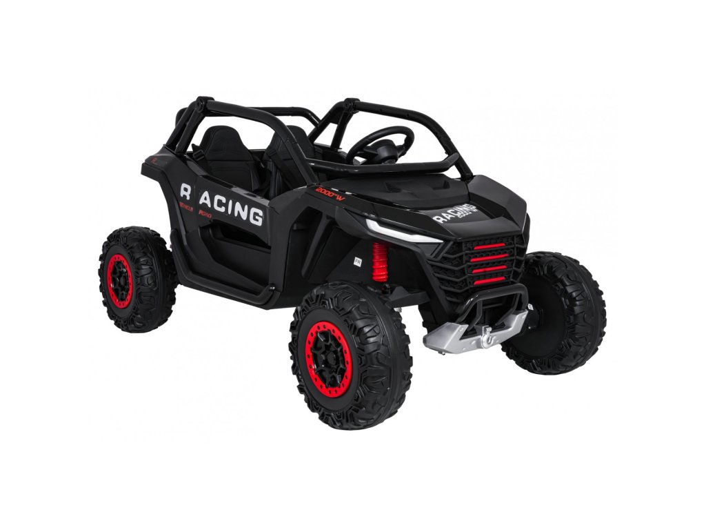 Dječji električni automobil RACING Road 2000 24V robustan je i svestran model za dva mala vozača koji žele uživati u pravoj avanturi. Zahvaljujući četiri snažna motora (4 × 120W) i snažnoj bateriji od 24V 7Ah, automobil se može nositi ne samo s glatkim površinama, već i s blago neravnim terenom. Mekani kotači od EVA pjene i podesivi stražnji ovjes osiguravaju glatku vožnju bez nepotrebnih trzaja, dok funkcija mekog pokretanja doprinosi sigurnosti i udobnosti.