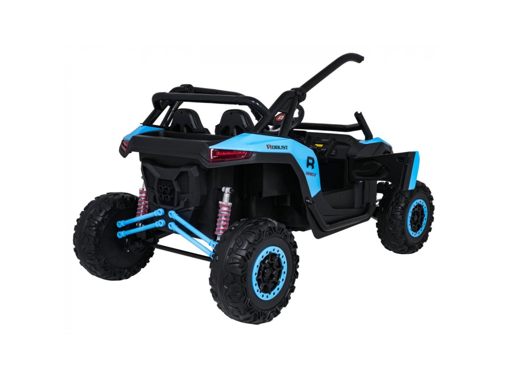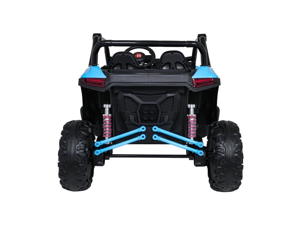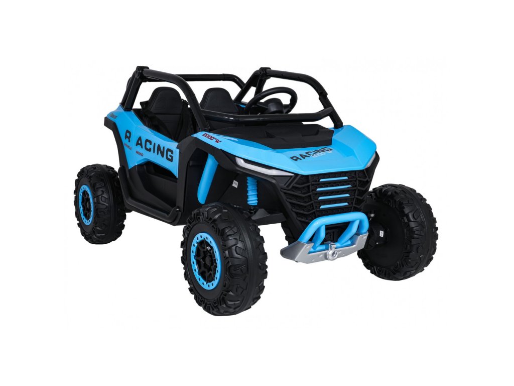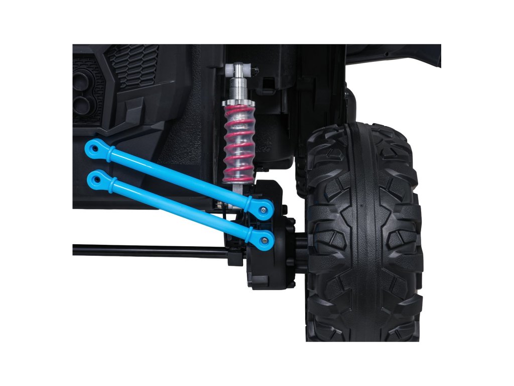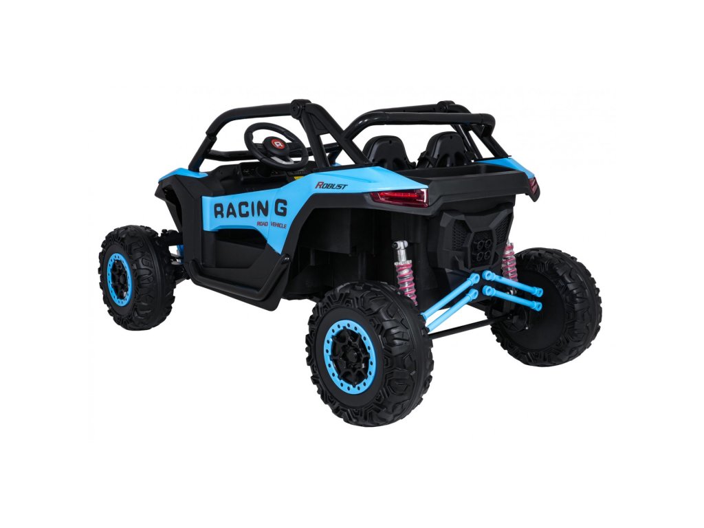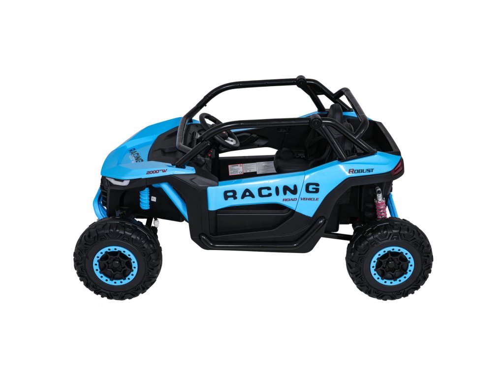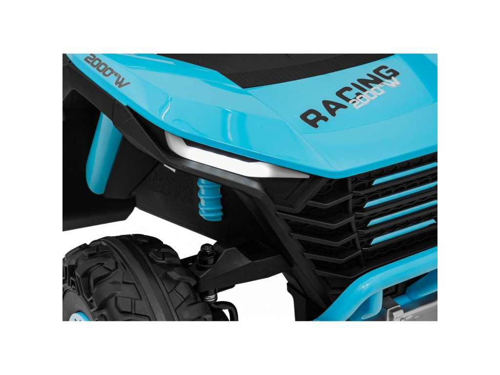 Dječji električni automobil RACING Road 2000 24V robustan je i svestran model za dva mala vozača koji žele uživati u pravoj avanturi. Zahvaljujući četiri snažna motora (4 × 120W) i snažnoj bateriji od 24V 7Ah, automobil se može nositi ne samo s glatkim površinama, već i s blago neravnim terenom. Mekani kotači od EVA pjene i podesivi stražnji ovjes osiguravaju glatku vožnju bez nepotrebnih trzaja, dok funkcija mekog pokretanja doprinosi sigurnosti i udobnosti.