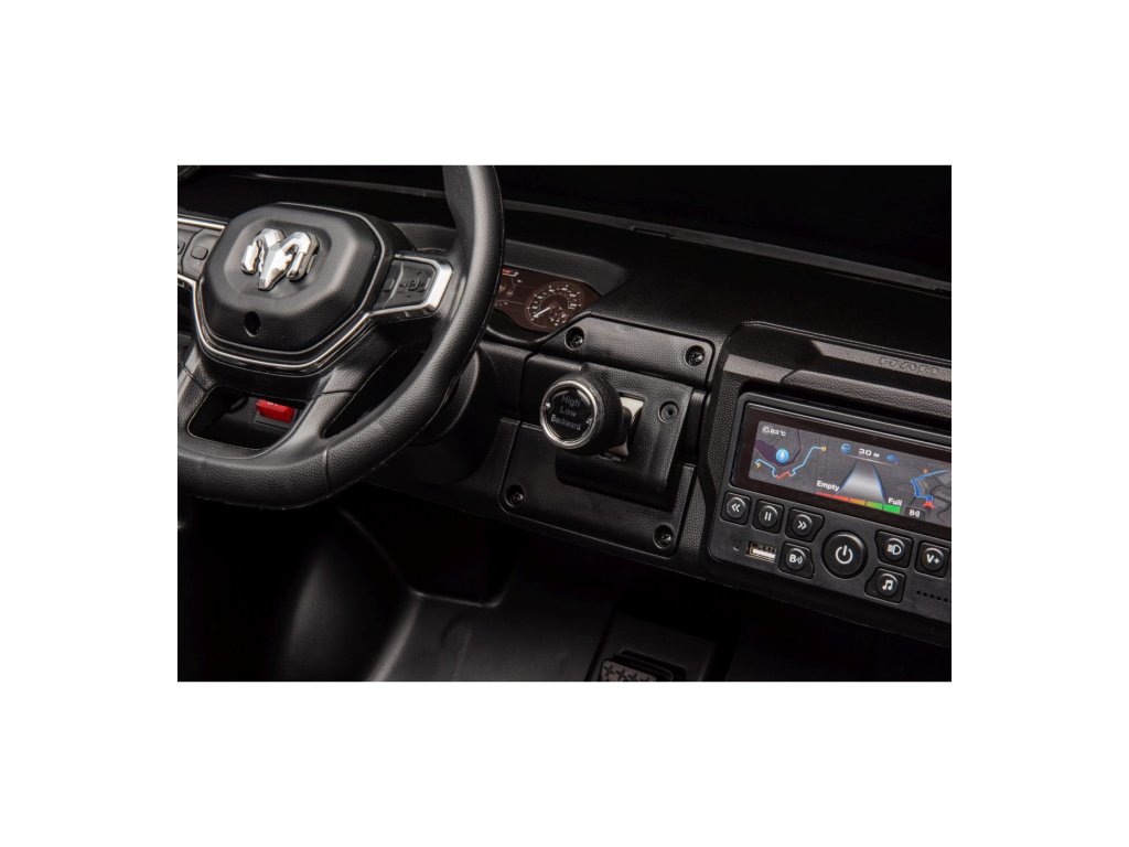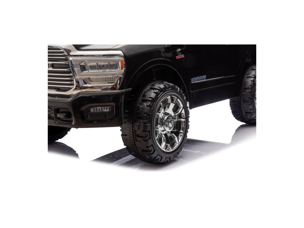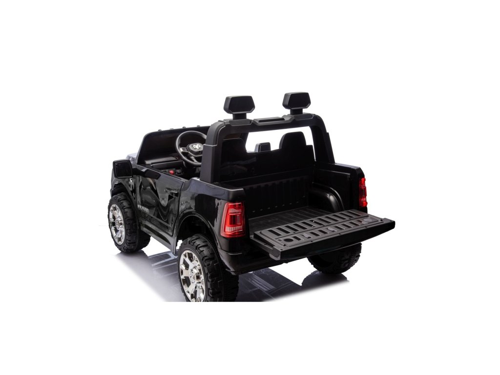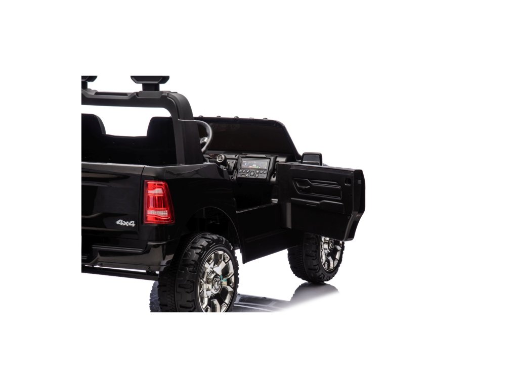 Električni automobil RAM 3500 ima dva motora ukupne snage 400 W i bateriju kapaciteta 24V/7Ah. Kotači od EVA pjene i sjedalo prekriveno eko kožom osiguravaju udobnu vožnju. Glazbena ploča s MP3 i USB-om zasigurno će vožnju učiniti ugodnijom za vaše dijete . Nosivost Igračka automobil teži 50 kg . Igračka automobil ima prednje i stražnje LED osvjetljenje i vrata koja se otvaraju.