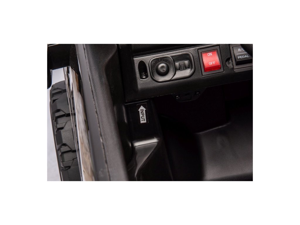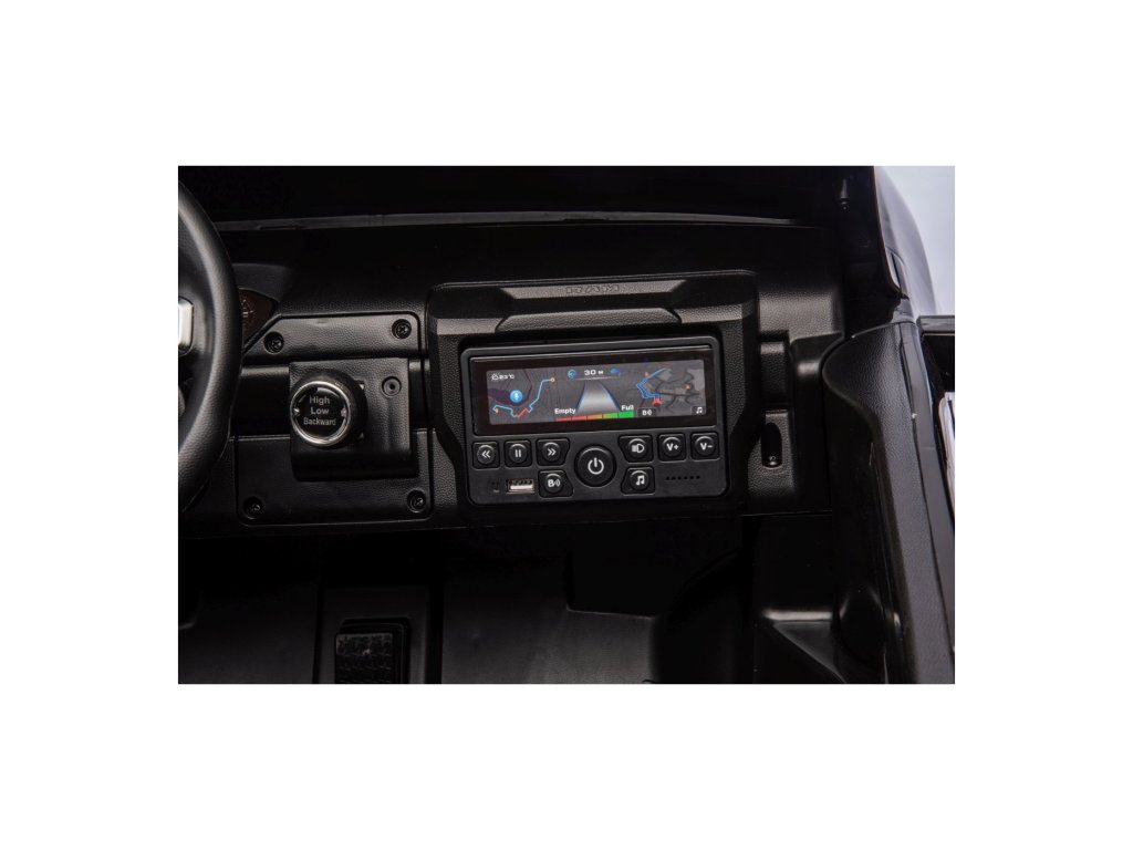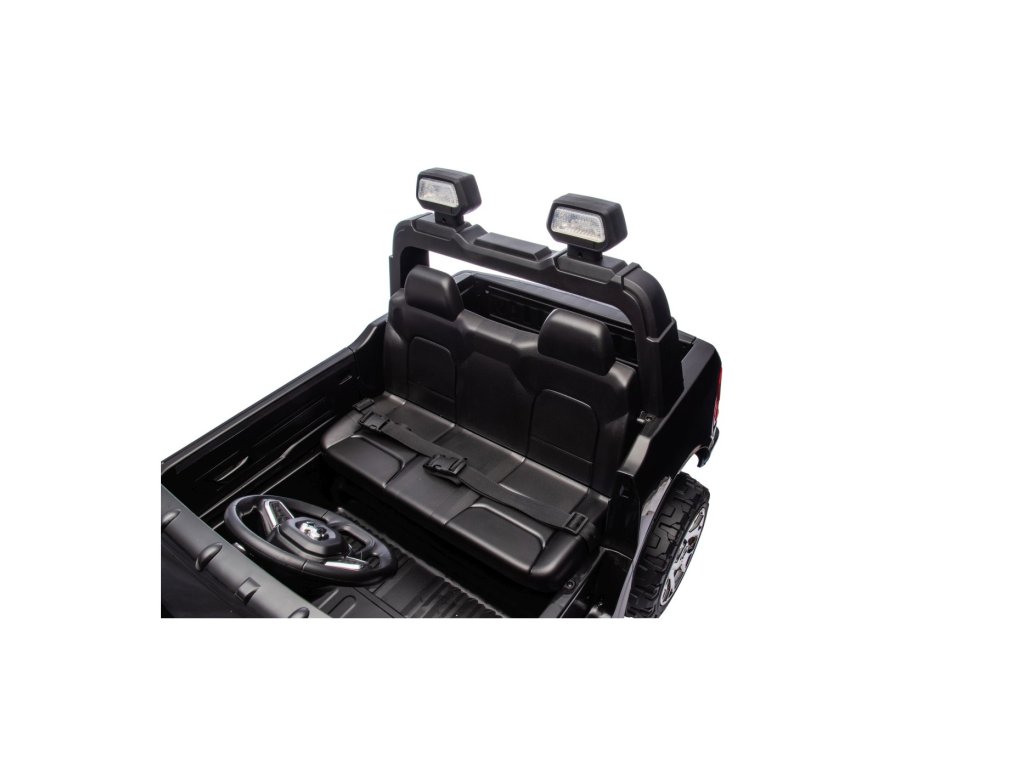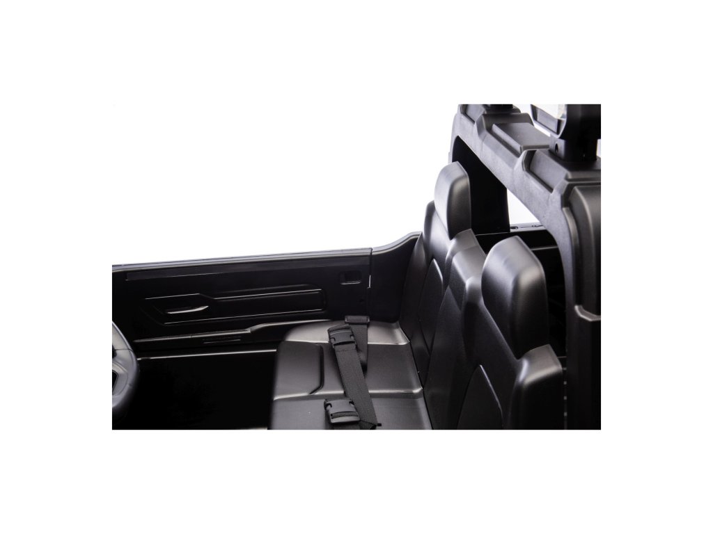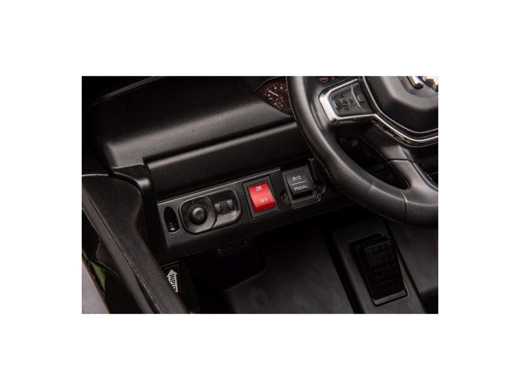 Električni automobil RAM 3500 ima dva motora ukupne snage 400 W i bateriju kapaciteta 24V/7Ah. Kotači od EVA pjene i sjedalo prekriveno eko kožom osiguravaju udobnu vožnju. Glazbena ploča s MP3 i USB-om zasigurno će vožnju učiniti ugodnijom za vaše dijete . Nosivost Igračka automobil teži 50 kg . Igračka automobil ima prednje i stražnje LED osvjetljenje i vrata koja se otvaraju.