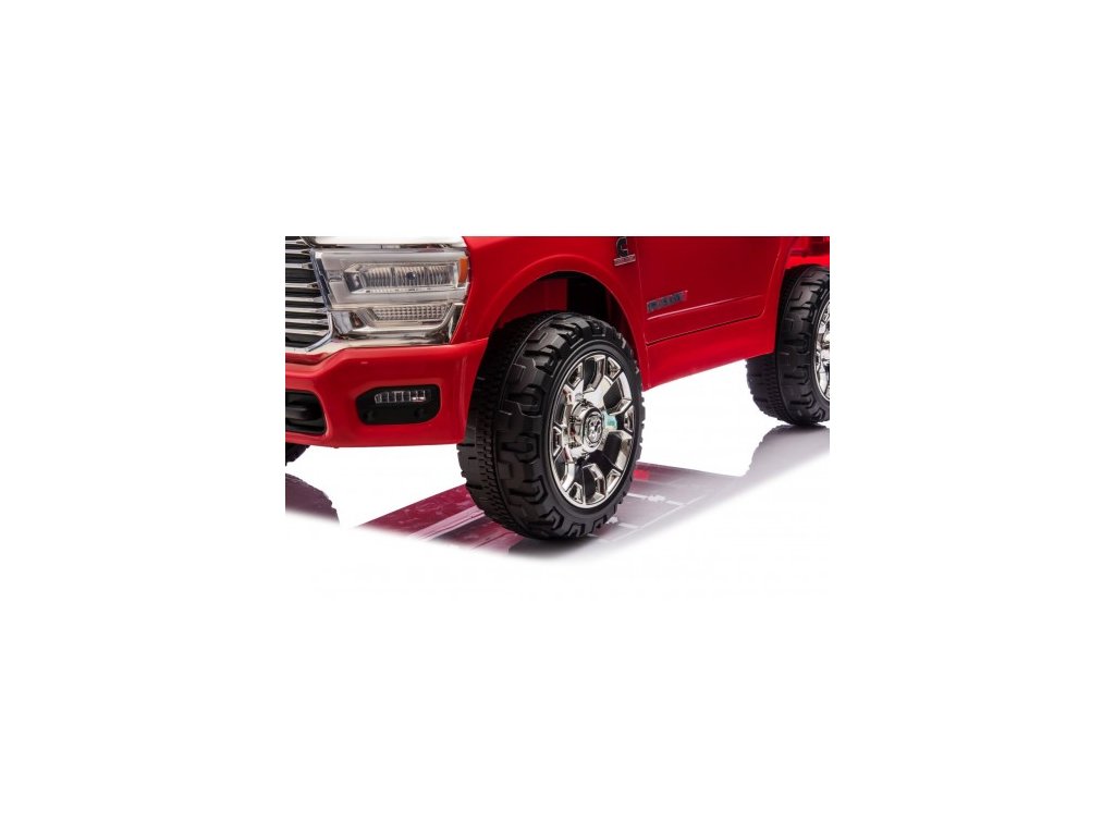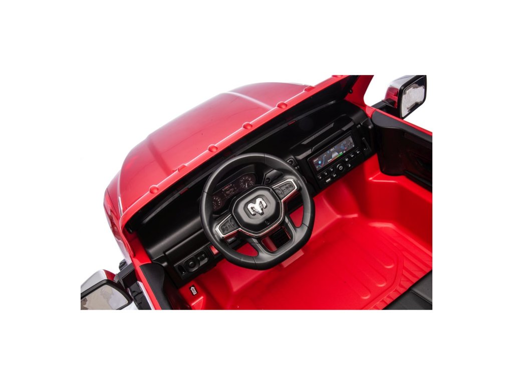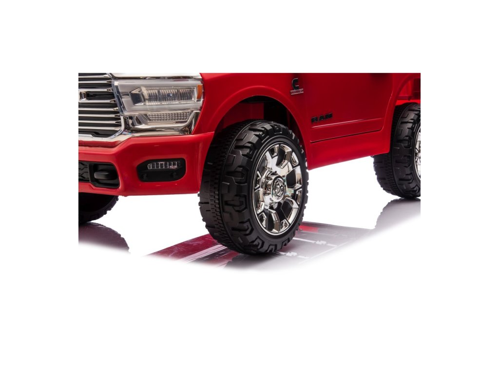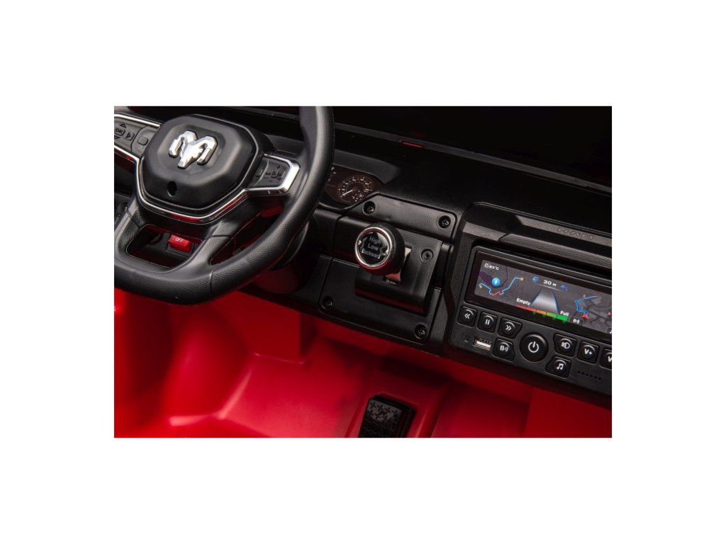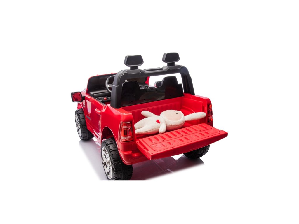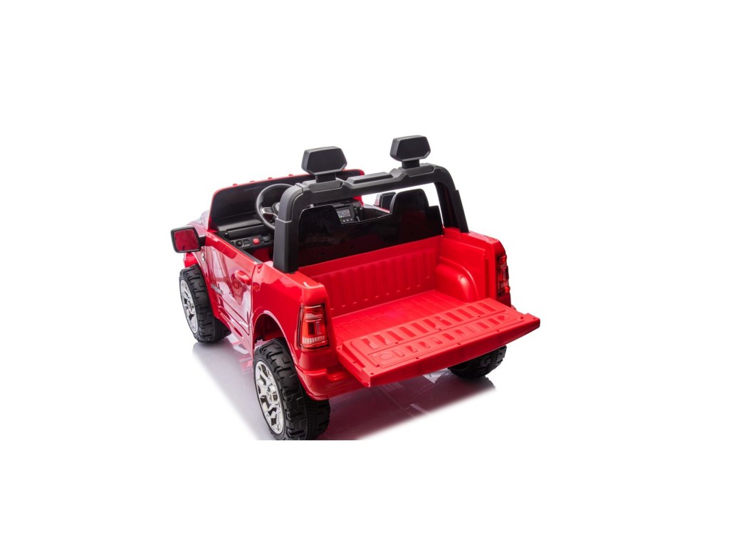 Električni automobil RAM 3500 ima dva motora ukupne snage 400 W i bateriju kapaciteta 24V/7Ah. Kotači od EVA pjene i sjedalo prekriveno eko kožom osiguravaju udobnu vožnju. Glazbena ploča s MP3 i USB-om zasigurno će vožnju učiniti ugodnijom za vaše dijete . Nosivost Igračka automobil teži 50 kg . Igračka automobil ima prednje i stražnje LED osvjetljenje i vrata koja se otvaraju.